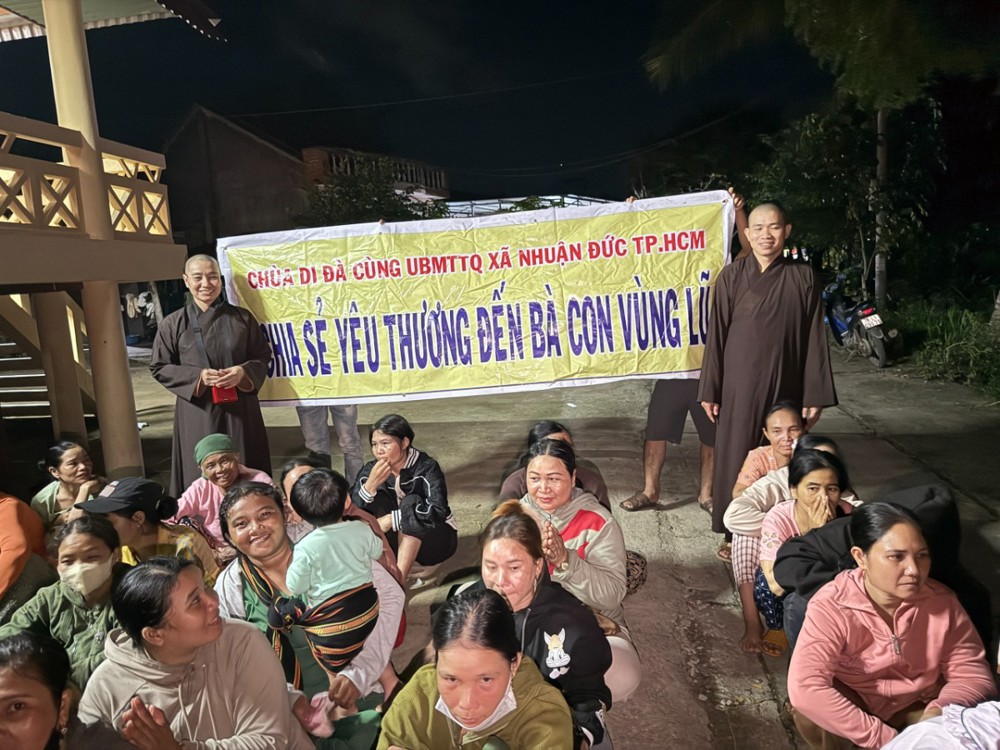 Trước tình hình đó, thực hiện công văn của Hội đồng Trị sự, bằng tinh thần từ bi của người con Phật và truyền thống “lá lành đùm lá rách”, đạo tràng chùa Di Đà đã tổ chức chuyến đi nhằm hỗ trợ bà con vượt qua giai đoạn khó khăn sau lũ lụt.