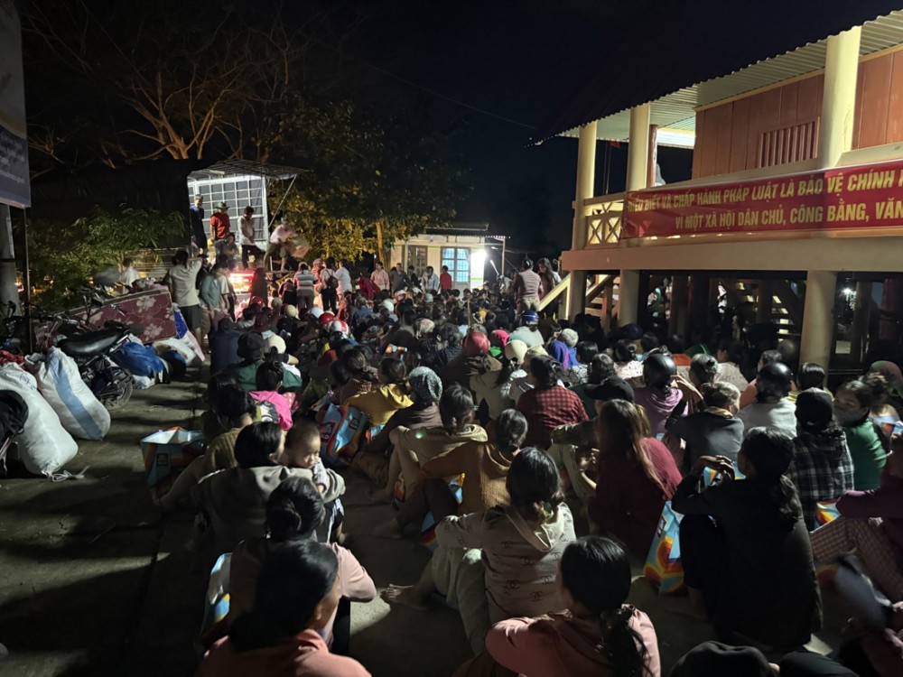 Rời Hòa Xuân, đoàn đến xã Sơn Hòa – khu vực có nhiều thôn xóm nằm ngay dưới cửa xả thủy điện Sông Ba Hạ, chịu tác động trực tiếp của dòng lũ dữ. Tại thôn Thạnh Hội, đoàn đã trao 200 phần quà; tại xóm Bãi Điều, đoàn trao 170 phần quà; và tại Suối Câu, đoàn trao 300 phần quà đến các hộ dân bị ảnh hưởng.