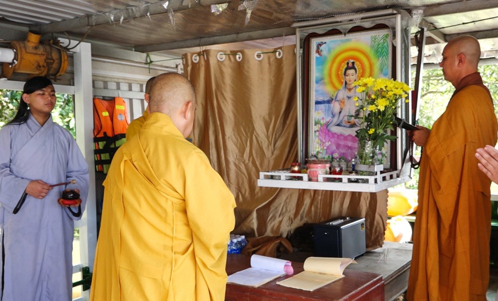 Trong không khí trang nghiêm thanh tịnh, dưới sự hướng dẫn của Thượng tọa Thích Từ Trí – Viện chủ chùa Giác Tánh, cùng Đại đức Thích Trí Lực – Trụ trì chùa Giác Tánh, chư Tăng cùng Phật tử đạo tràng đã thành kính thực hiện các nghi thức tụng kinh, sái tịnh, chú nguyện và cử hành nghi thức phóng sanh trên dòng sông Vàm Cỏ Đông (tỉnh Tây Ninh).