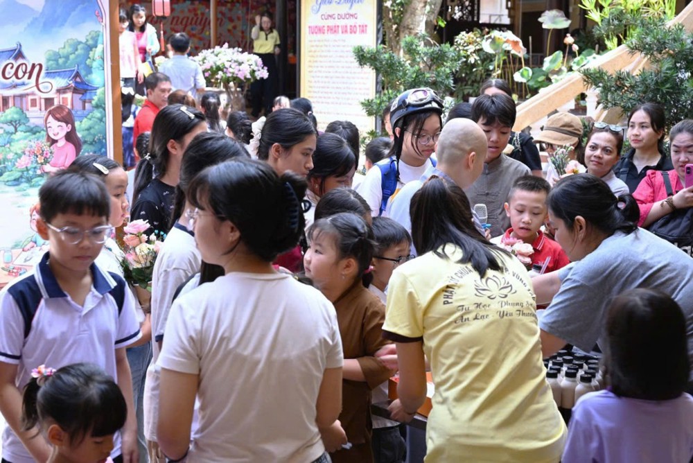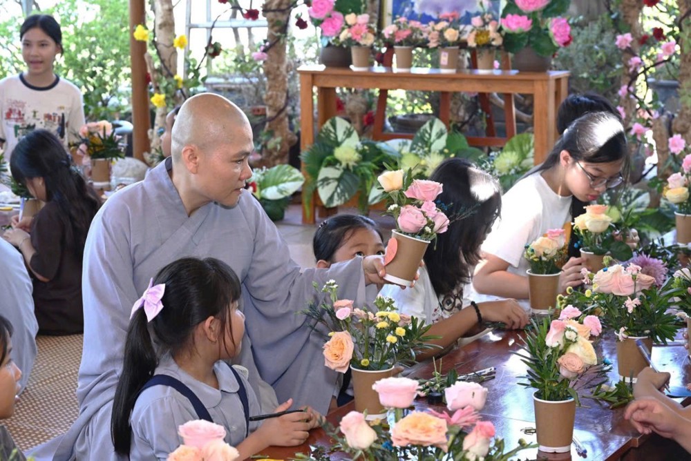 PSO - Sáng 05-4, nhân ngày vía Bồ-tát Quán Thế Âm (19-2 Âm lịch), Sư cô Thích Nữ Huệ Trí, Trụ trì chùa Hải Vân (phường Vũng Tàu, TP.HCM) tổ chức chương trình “Mẹ là Bồ Tát của con” cho các bạn nhỏ.