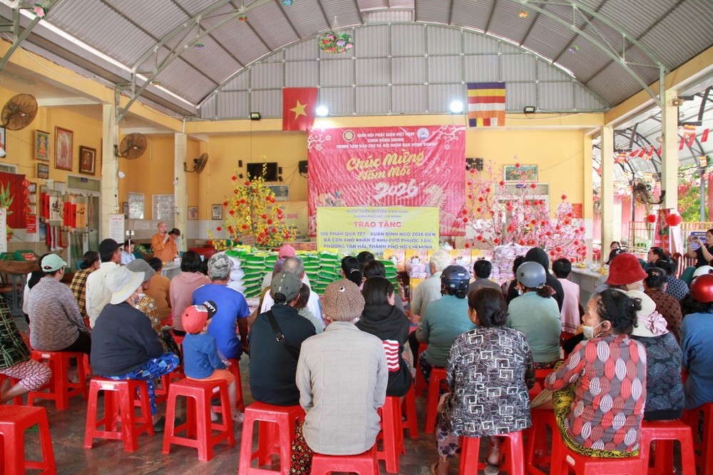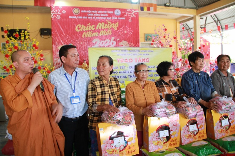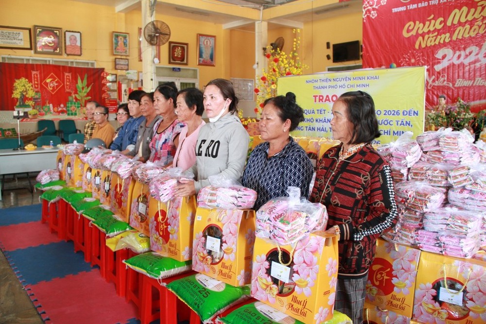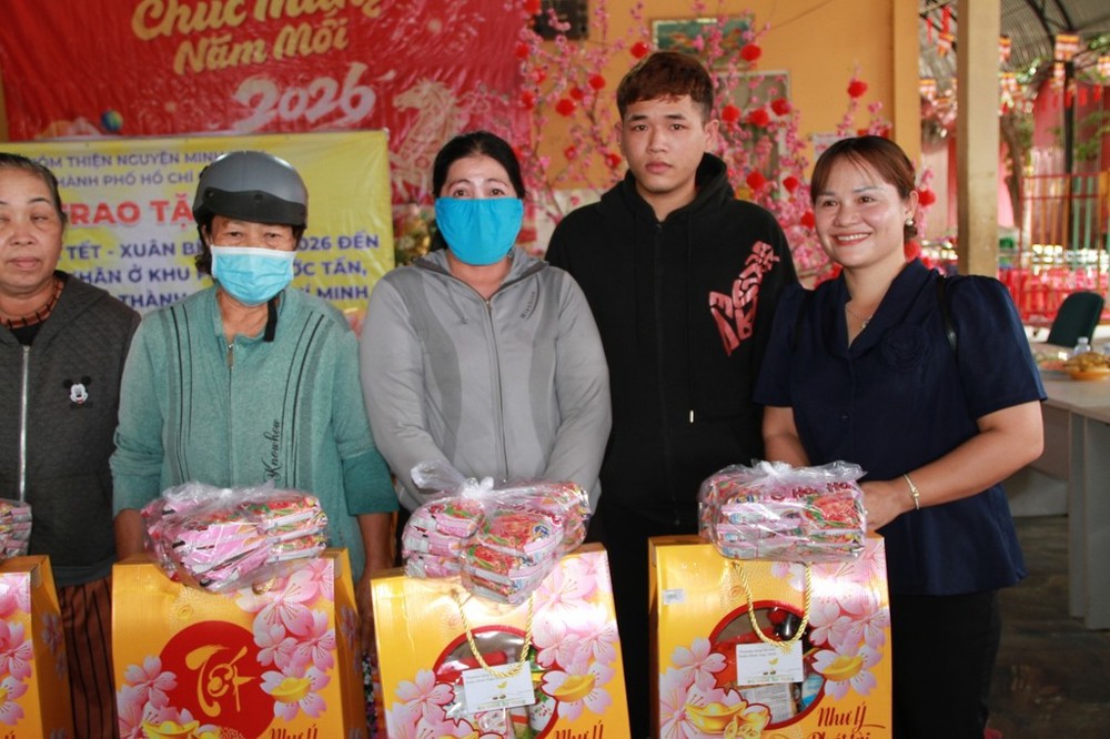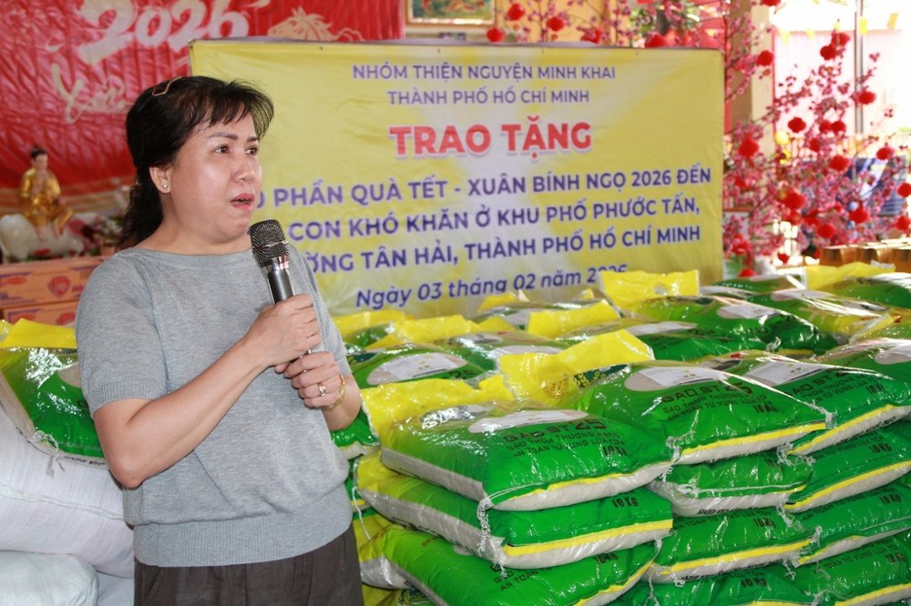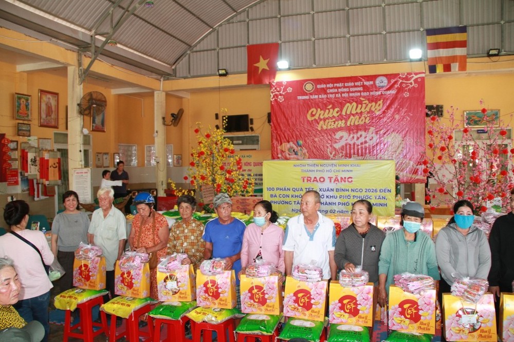 Sáng ngày 03/02/2026 (nhằm ngày 16 tháng Chạp năm Ất Tỵ), thông qua sự kết nối của Đại đức Thích Thiện Thông, nhóm thiện nguyện Minh Khai (TP.HCM) do bà Phạm Minh Châu và bà Đoàn Thị Thanh Thủy làm trưởng đoàn đã về khu phố Phước Tấn, phường Tân Hải, trao tặng 100 phần quà Tết đến các hộ gia đình có hoàn cảnh khó khăn.