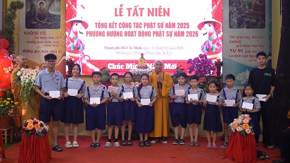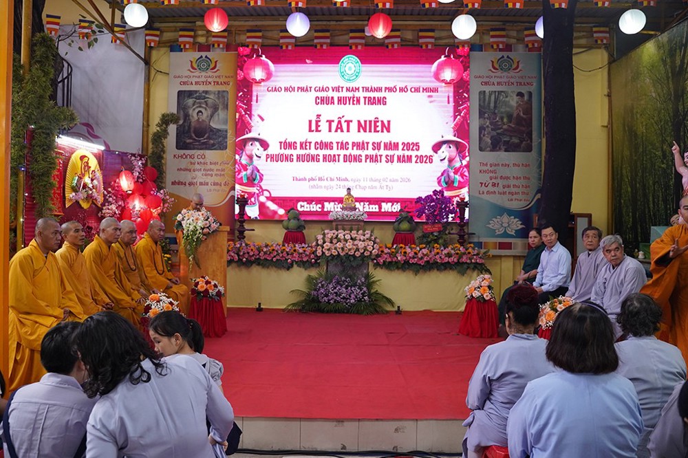 PSO – Nhằm tổng kết công tác tu học, sinh hoạt Phật sự trong năm 2025, đồng thời phổ biến chương trình tu học, các ngày lễ trọng và phương hướng hoạt động Phật sự của chùa Huyền Trang trong năm 2026, sáng ngày 11/02/2026 (nhằm ngày 24 tháng Chạp năm Ất Tỵ), tại chùa Huyền Trang (TP.HCM), lễ Tất niên năm 2025 đã được long trọng tổ chức trong không khí trang nghiêm, thanh tịnh.