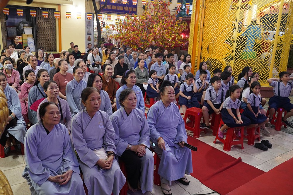 Buổi lễ tiếp tục với lời cảm tưởng chúc Tết của đại diện Phật tử, bày tỏ lòng tri ân sâu sắc đến chư Tôn đức đã tận tâm hướng dẫn, dìu dắt trong suốt thời gian qua.