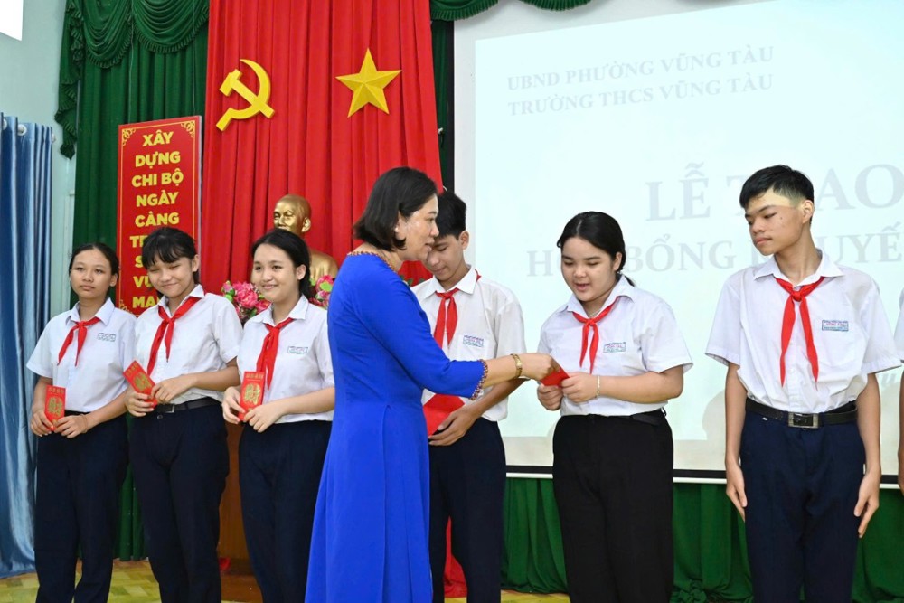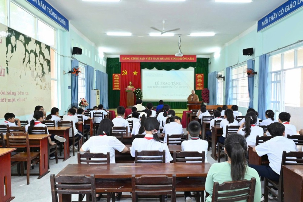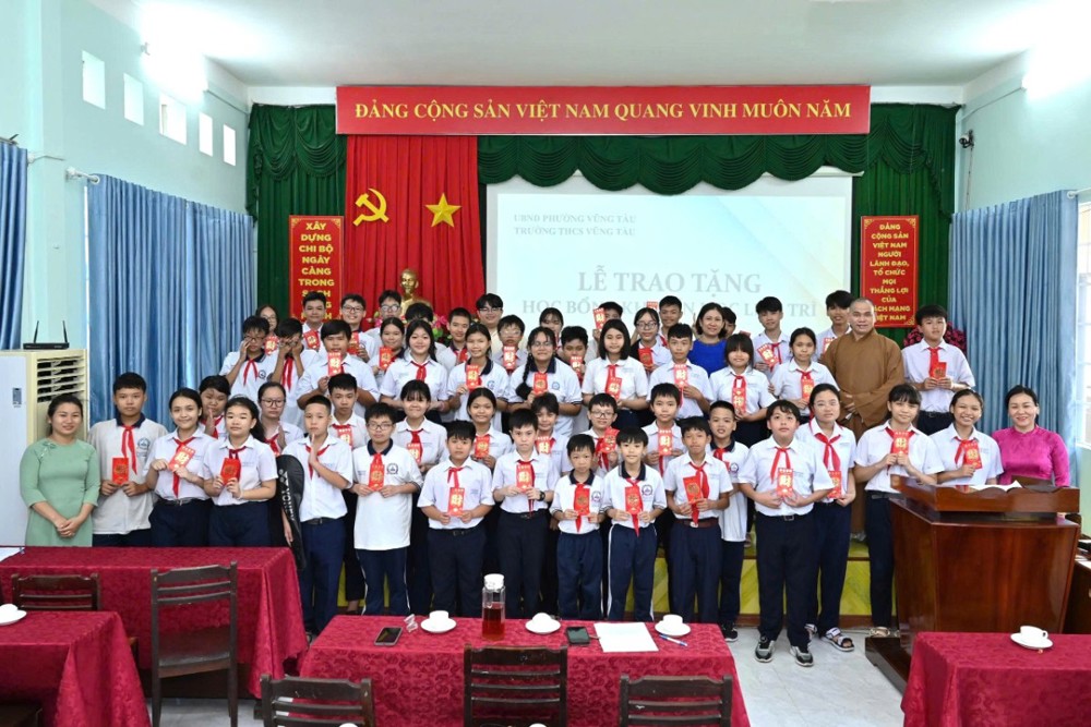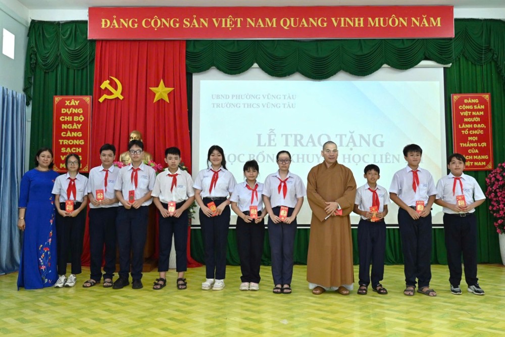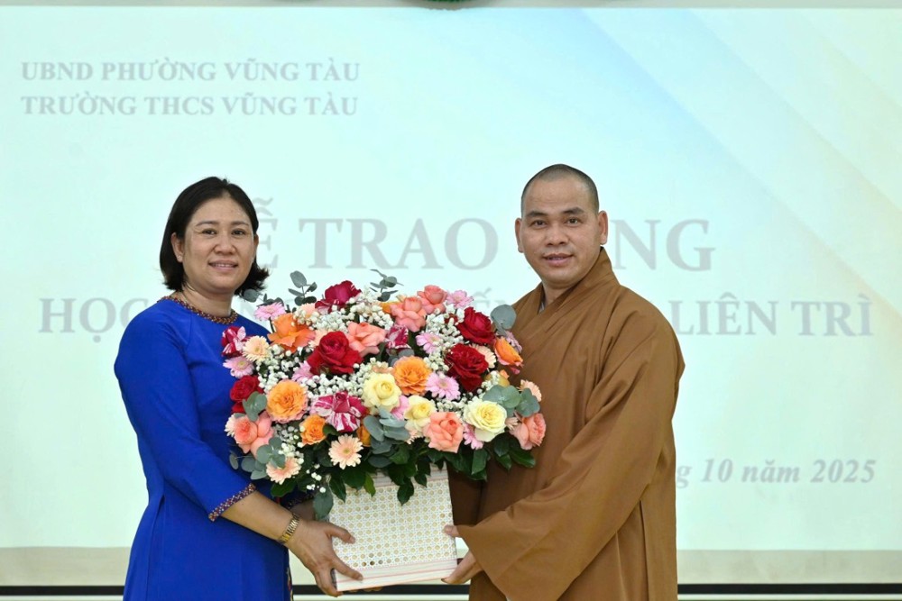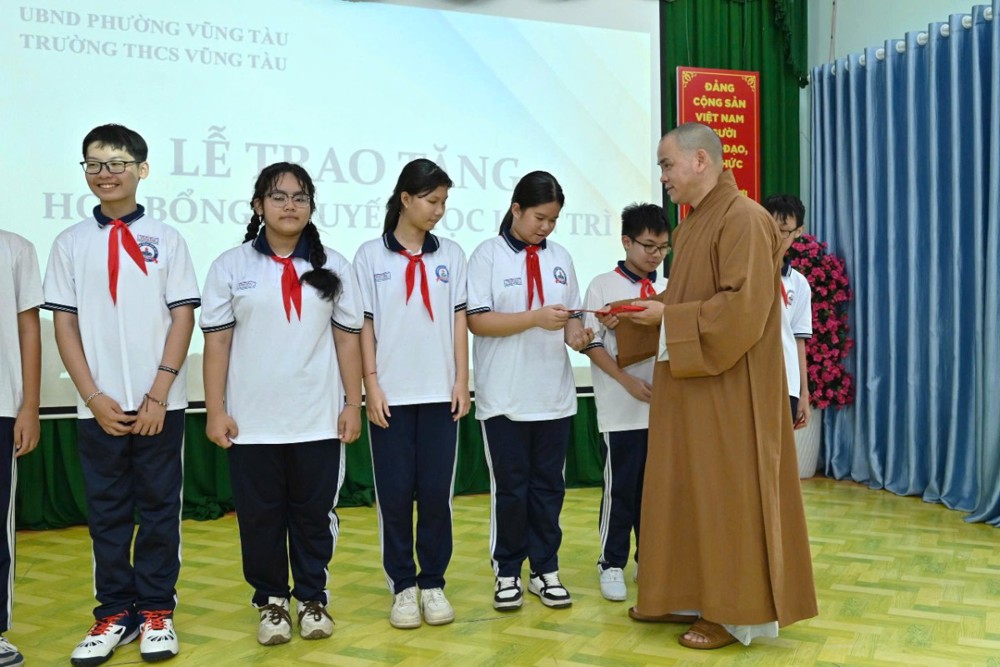 PSO - Mùa Trung thu không chỉ là dịp đoàn viên, mà còn là thời điểm để sẻ chia yêu thương. Sáng ngày 6-10, trong tinh thần từ bi và nhân ái của Phật giáo, Quỹ Học bổng Khuyến Học - Chùa Liên Trì (P.Vũng Tàu, TP.HCM) đã trao học bổng đầy ý nghĩa tại Trường THCS Vũng Tàu.