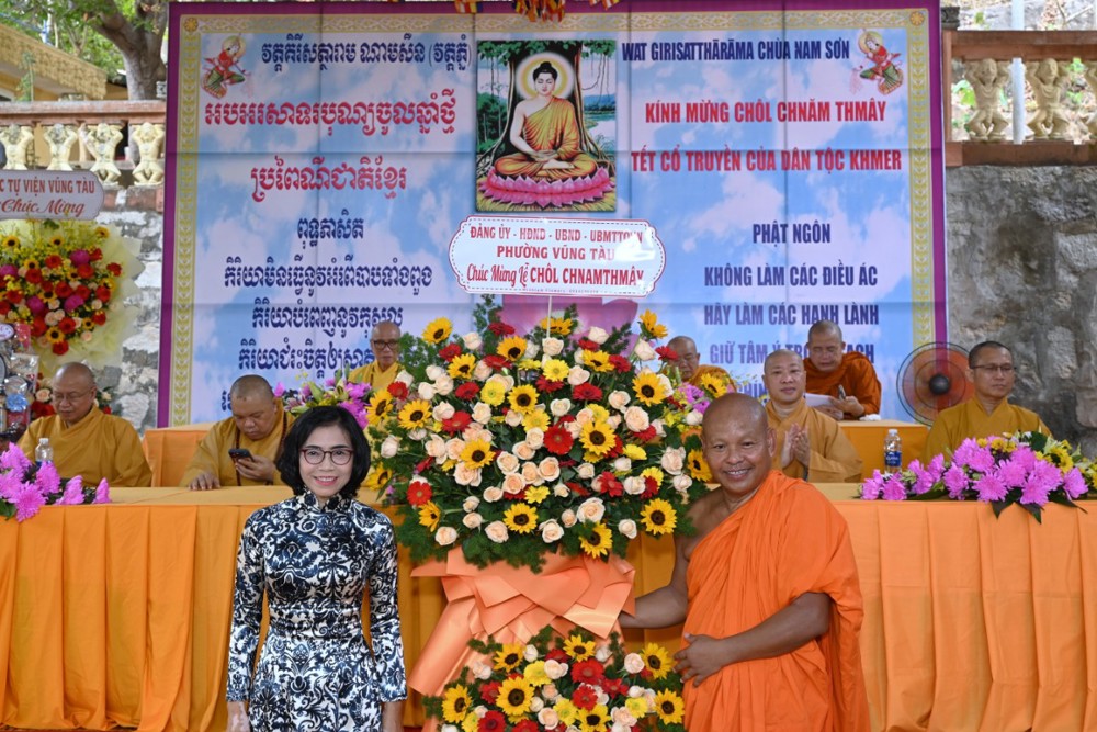 Bà cũng thay mặt lãnh đạo địa phương gửi lời chúc mừng năm mới an lành, hạnh phúc đến chư Tôn đức Tăng, bà con Phật tử và đồng bào Khmer; đồng thời bày tỏ sự trân trọng đối với những đóng góp tích cực của cộng đồng trong việc giữ gìn bản sắc văn hóa dân tộc, phát triển kinh tế – xã hội và xây dựng đời sống văn hóa tại địa phương ngày càng khởi sắc.