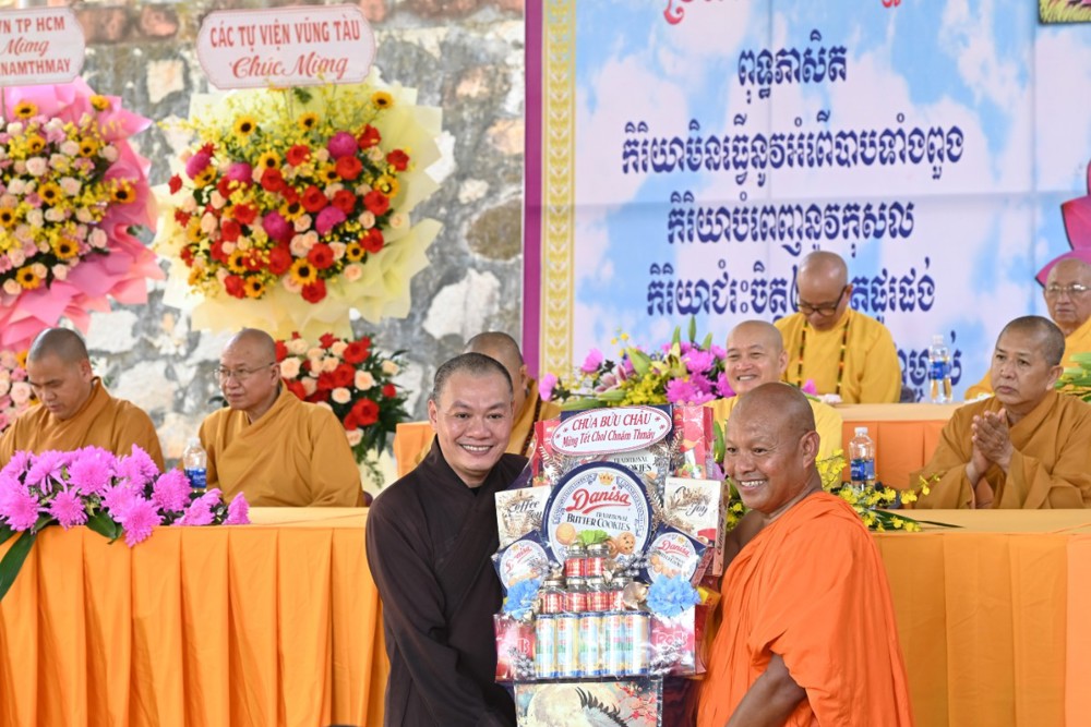 Trong không khí trang nghiêm, Hòa thượng Thích Nhuận Hải đã ban đạo từ, gửi lời chúc mừng năm mới an lạc, cát tường đến toàn thể chư Tôn đức Tăng và bà con đồng bào Khmer. Hòa thượng tán dương tinh thần gìn giữ và phát huy những giá trị văn hóa truyền thống tốt đẹp gắn liền với đời sống Phật giáo; đồng thời nhấn mạnh, Tết cổ truyền không chỉ là dịp vui xuân đón năm mới mà còn là cơ hội để mỗi người con Phật quay về nương tựa Tam bảo, tinh tấn tu tập, tích lũy phước báu, nuôi dưỡng tâm từ bi và trí tuệ, góp phần xây dựng đời sống “tốt đời, đẹp đạo”.