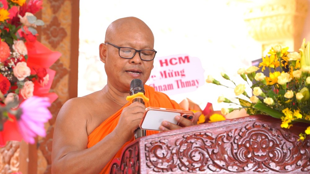 Phát biểu khai mạc, Thượng tọa Quách Thành Sattha đã chia sẻ ý nghĩa thiêng liêng của Tết cổ truyền Chol Chnam Thmay – dịp lễ quan trọng nhất trong năm của đồng bào Khmer. Thượng tọa nhấn mạnh, đây không chỉ là thời khắc chuyển giao năm cũ sang năm mới theo lịch cổ truyền, mà còn là dịp để mỗi người con Phật hướng tâm tu tập, làm mới thân – khẩu – ý, vun bồi công đức và nuôi dưỡng đời sống tâm linh.