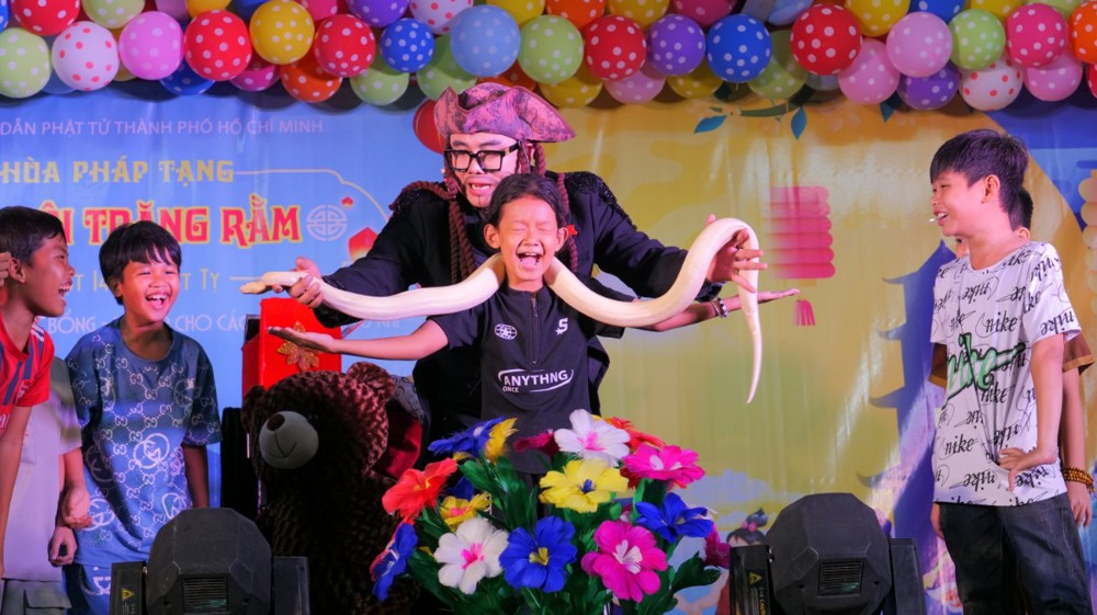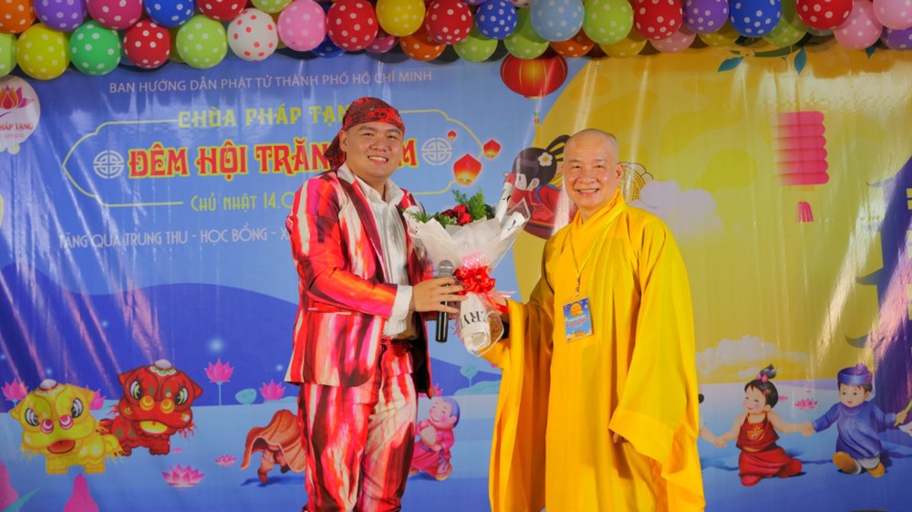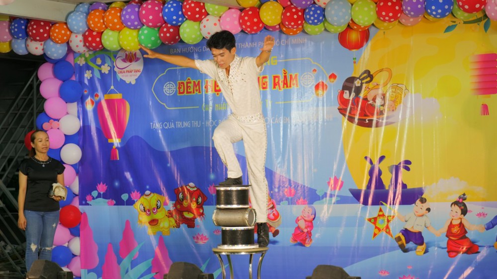 Tại chùa Pháp Tạng (TP.HCM), chương trình “Đêm Hội Trăng Rằm” đã diễn ra trong không khí tưng bừng, sôi nổi với sự tham gia của các nghệ sĩ, ca sĩ như: Nghệ sỹ Hài Chung Chung – Chí Vũ, ca sỹ Kim Linh, MC Lâm Chấn Kiệt, The Queen Band, nghệ sỹ An Thanh, Hoa Hậu Vũ Ngọc Trân. Đặc biệt có phần biểu diễn ảo thuật đặc sắc của ảo thuật gia quốc tế Tuấn Minh và Nghệ sỹ xiếc Hoàng Long đã mang đến những giây phút tràn ngập tiếng cười, niềm vui và an lành cho các em nhỏ.