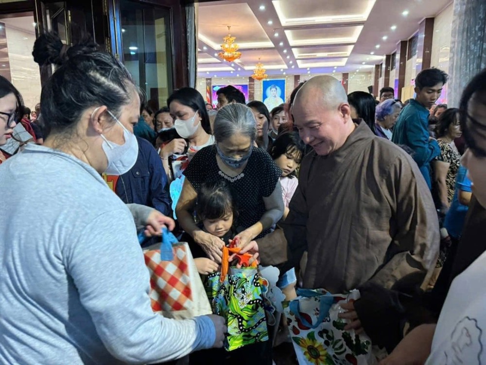 Trước khi diễn ra buổi lễ trao tặng quà và học bổng đến các em thanh thiếu nhi, Đại đức Thích Trí Huệ – Trụ trì chùa Pháp Tạng đã gửi lời chúc thân thương đến toàn thể các em, chúc các em đón một mùa Trung thu an lành, tràn ngập niềm vui bên gia đình và người thân.
