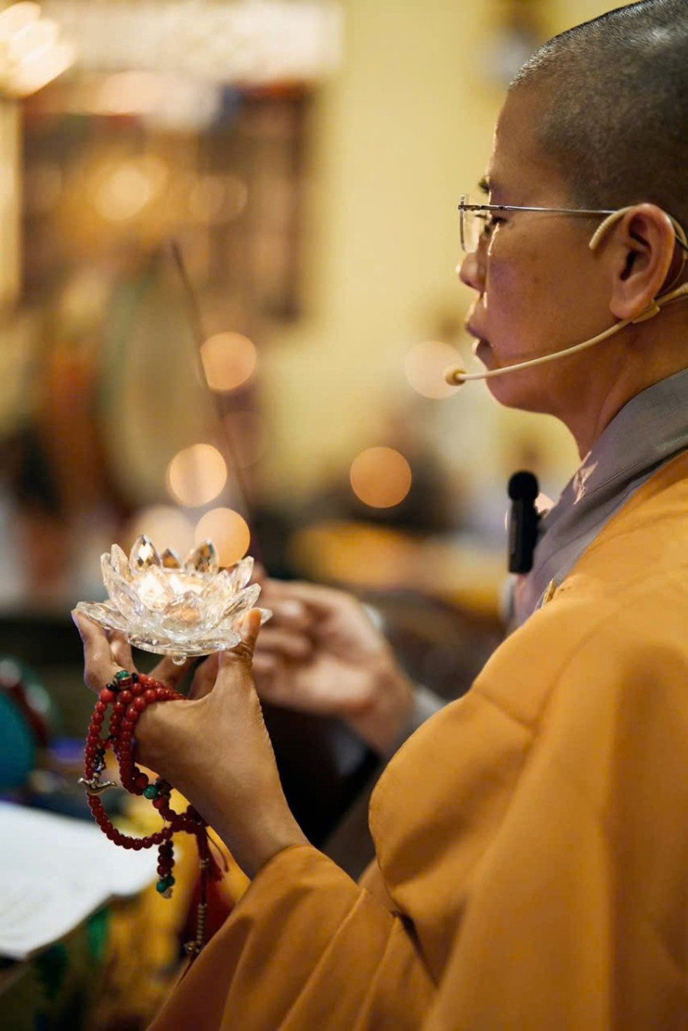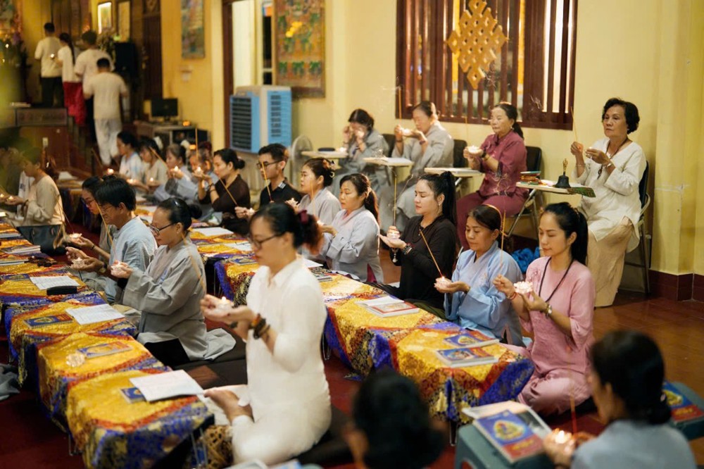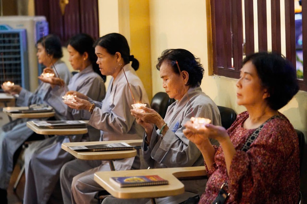Trong không gian lung linh ánh đăng, tiếng chuông trống Bát-nhã nhịp nhàng hòa cùng lời kinh trầm hùng vang vọng, buổi lễ đã tạo nên bầu không khí thiêng liêng, thấm đượm đạo vị. Mỗi thời khóa là một lần đại chúng cùng quay về nội tâm, phát khởi chánh niệm và vun bồi hạt giống an lành.