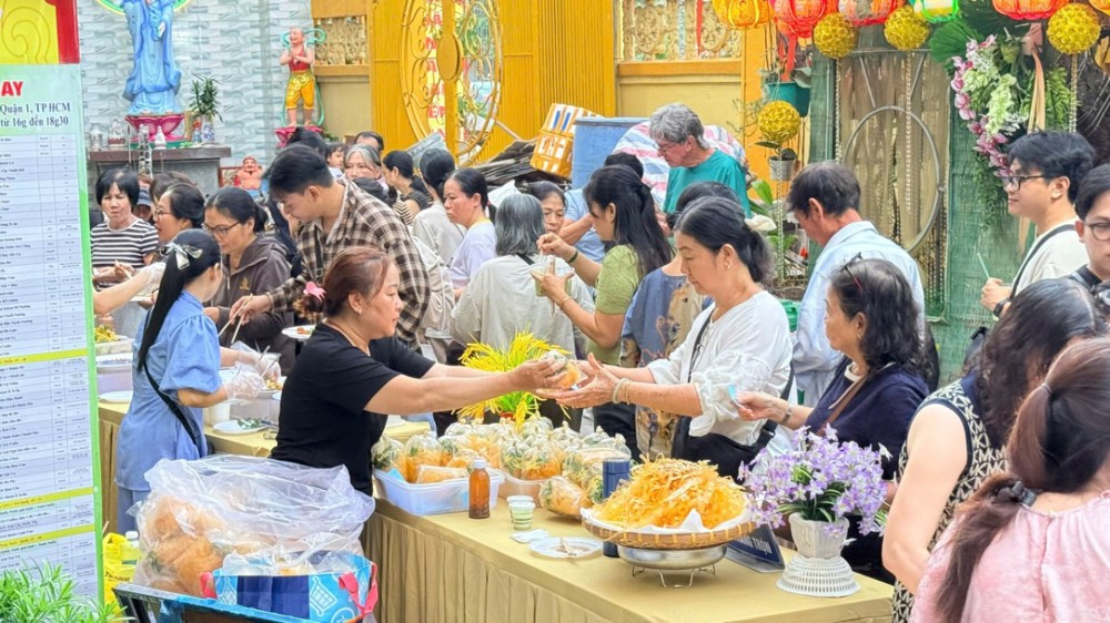 PSO - Chiều ngày 25-10 Âm lịch (nhằm ngày 14-12-2025), Tổ đình chùa Vạn Thọ (247 Hoàng Sa, phường Tân Định, TP.HCM) đã long trọng tổ chức Hội buffet chay trong không khí ấm áp, thanh tịnh, thấm đượm tinh thần từ bi của đạo Phật.