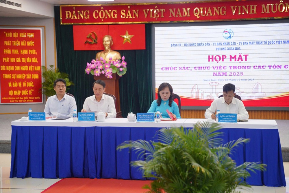 PSO – Sáng ngày 18/12/2025, tại phường Xuân Hòa đã long trọng diễn ra chương trình họp mặt chức sắc, chức việc các tôn giáo năm 2025, do Đảng ủy – HĐND – UBND – Ủy ban MTTQ Việt Nam phường Xuân Hòa tổ chức. Chương trình nhằm tăng cường mối quan hệ đoàn kết, gắn bó giữa chính quyền địa phương với các tổ chức tôn giáo trên địa bàn, góp phần phát huy sức mạnh khối đại đoàn kết toàn dân tộc.