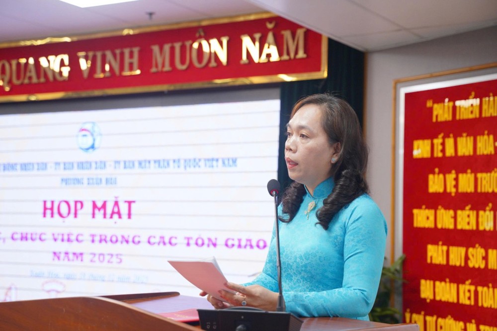 Tham dự buổi họp mặt có đại diện lãnh đạo Thành phố; đại diện Ban Tuyên giáo và Dân vận Thành ủy, Ủy ban MTTQ Việt Nam Thành phố, Sở Dân tộc và Tôn giáo, cùng đại diện các cơ quan, ban ngành liên quan. Về phía địa phương có bà Nguyễn Thanh Xuân – Thành ủy viên, Bí thư Đảng ủy phường Xuân Hòa; cùng các vị trong Ban Thường vụ Đảng ủy, lãnh đạo HĐND, UBND, Ủy ban MTTQ Việt Nam phường; ông Nguyễn Đình Phát – Phó Bí thư Thường trực Đảng ủy; ông Nguyễn Hùng Hậu – Phó Bí thư Đảng ủy, Chủ tịch UBND phường; ông Trần Nguyên Phong – Ủy viên Ban Thường vụ Đảng ủy, Chủ tịch Ủy ban MTTQ Việt Nam phường. Đặc biệt, buổi họp mặt có sự hiện diện đông đủ của quý vị chức sắc, chức việc đại diện các tôn giáo đang sinh hoạt, hành đạo trên địa bàn phường.