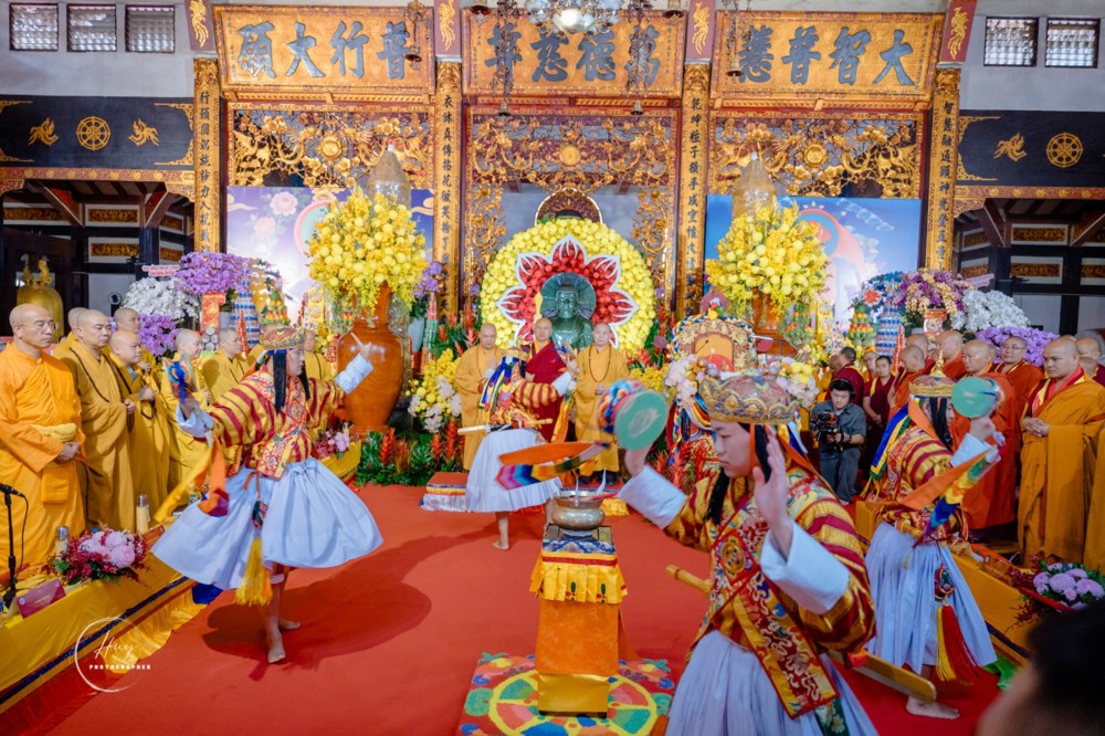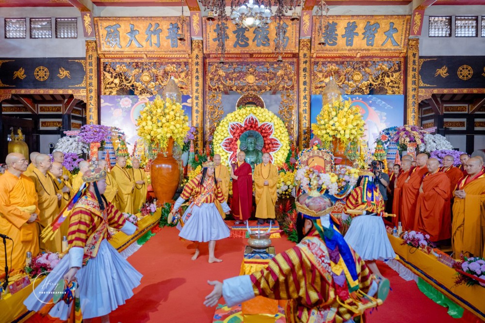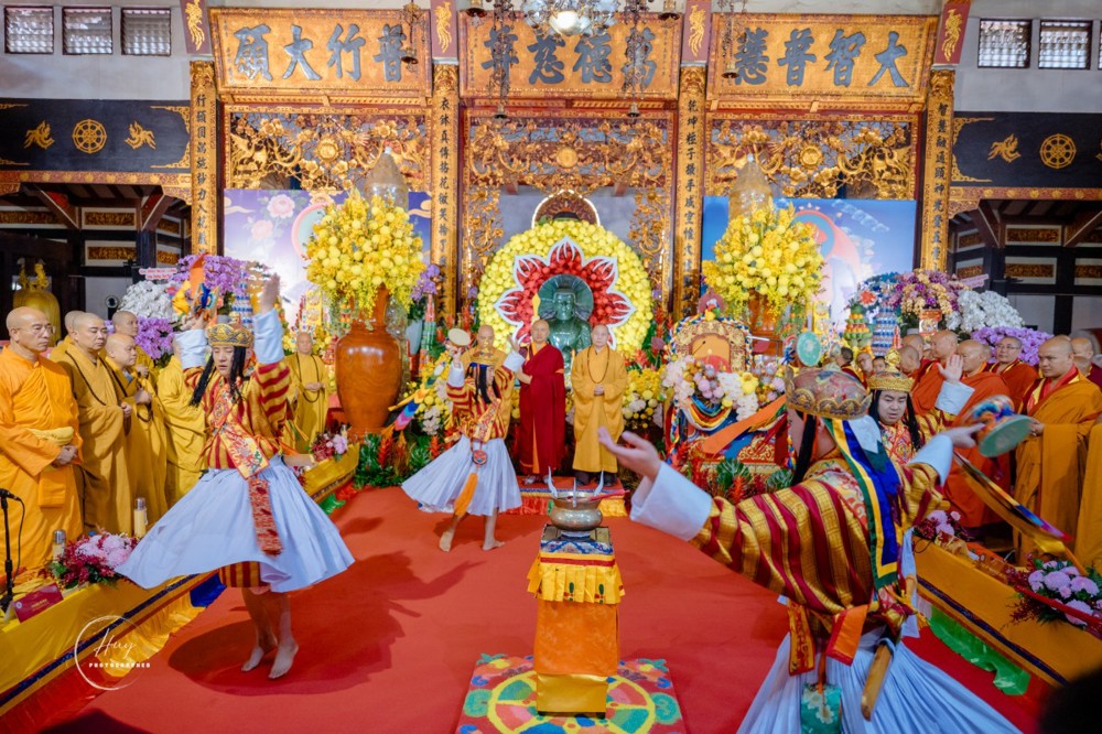 Mở đầu pháp hội là nghi thức cung đón Tăng đoàn Bhutan với điệu múa truyền thống Jepei Paw dâng cúng chư Phật và nghi lễ cúng dường Marchan, biểu trưng cho lời nguyện cầu bình an, thanh tịnh. Tiếp đó, chư Tăng Việt Nam cử hành nghi thức niêm hương bạch Phật, đồng tâm cầu nguyện thế giới hòa bình, quốc thái dân an; Tăng đoàn Bhutan tiếp nối bằng thời kinh theo nghi thức truyền thống, lan tỏa năng lượng từ bi và an lạc.