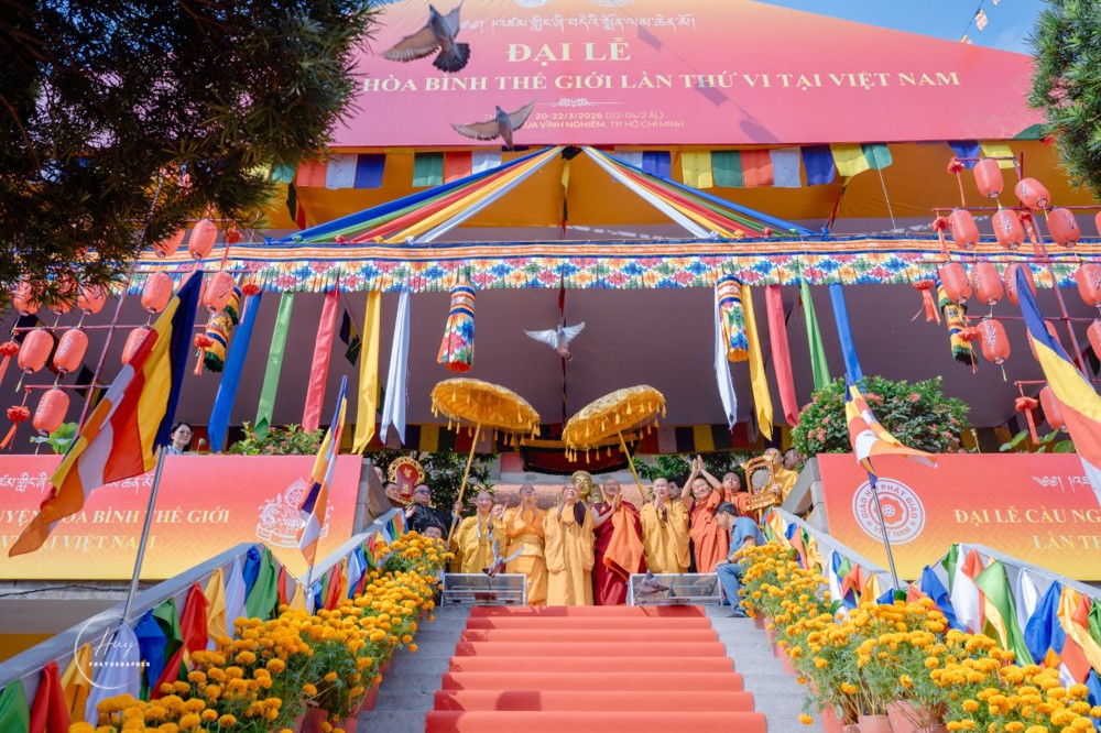 PSO - Sáng 20/3/2026, tại tổ đình Vĩnh Nghiêm (phường Xuân Hòa, TP.HCM), đại lễ cầu nguyện hòa bình thế giới – Monlam Chenmo lần thứ VI tại Việt Nam đã trang nghiêm khai mạc, với sự tham dự của chư Tôn đức hai nước Việt Nam - Bhutan cùng đông đảo Phật tử, thiện nam tín nữ.
