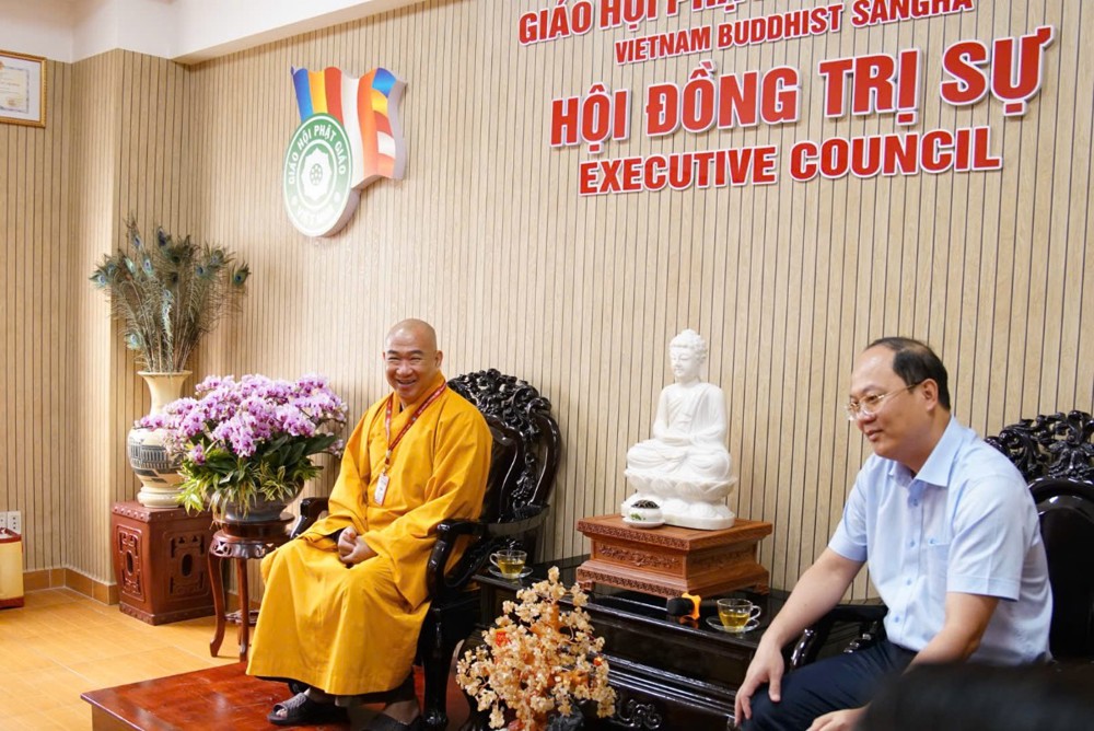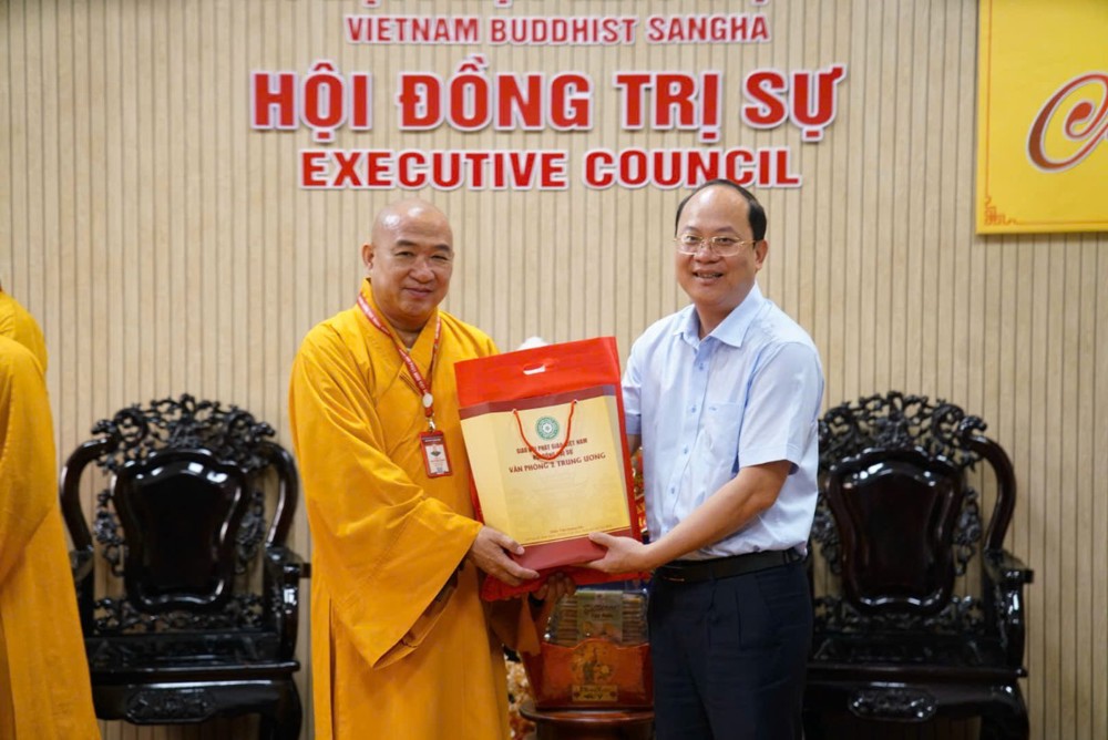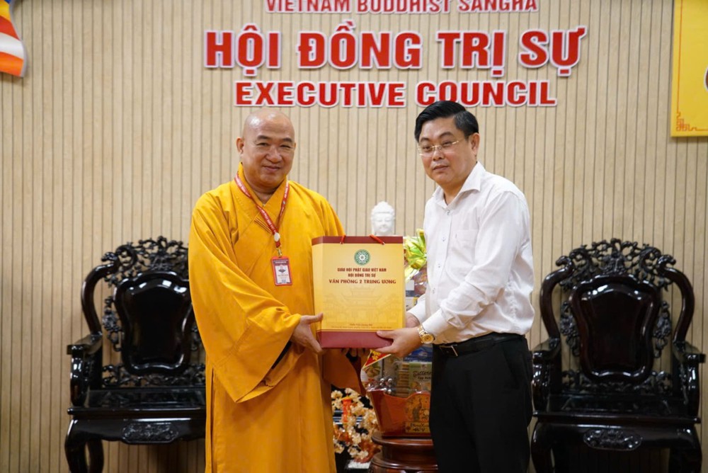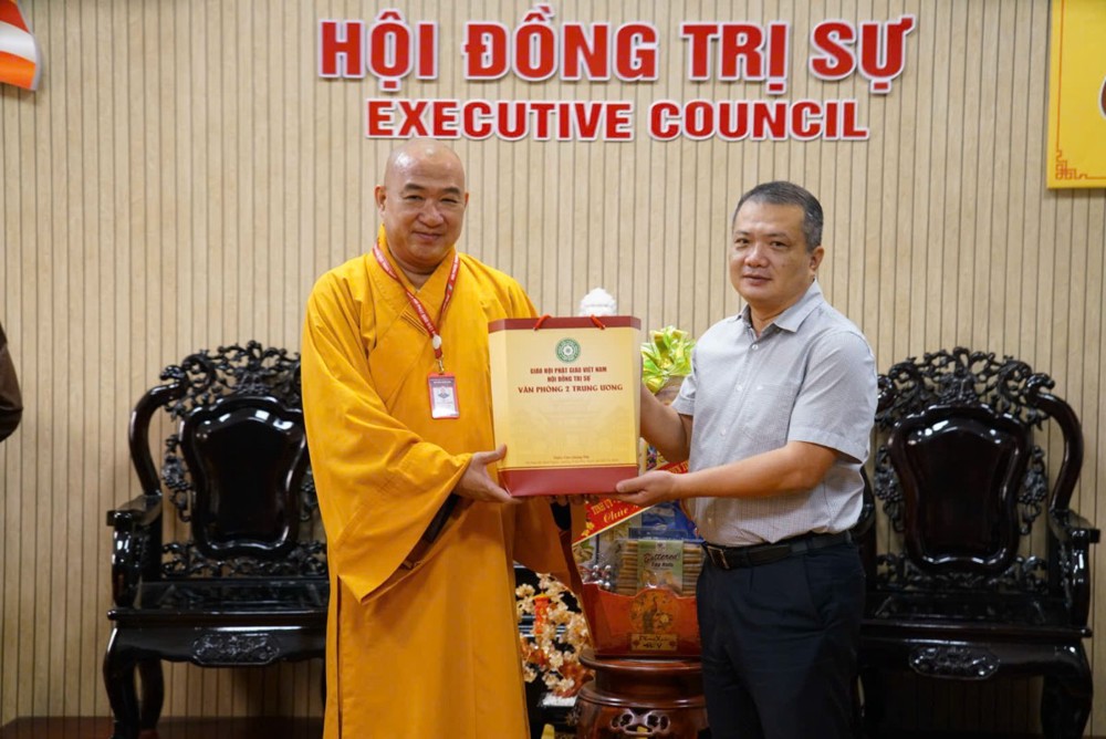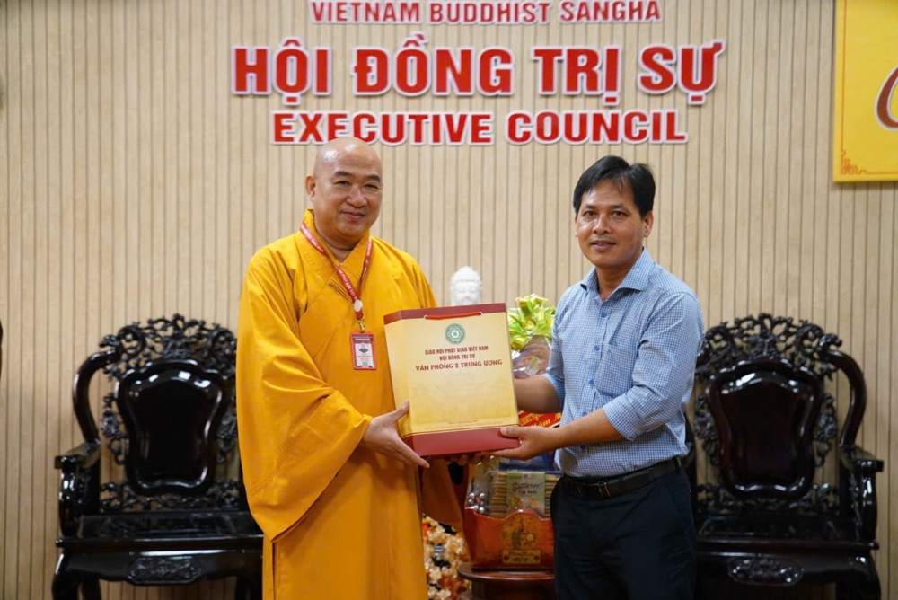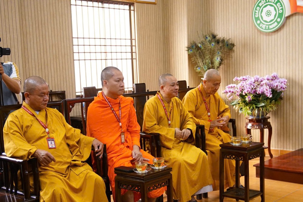 Tiếp đoàn có Thượng tọa Thích Phước Nguyên, Phó Tổng Thư ký, Chánh Văn phòng II Trung ương GHPGVN; Thượng tọa Thích Phước Nghiêm, Ủy viên Thường trực HĐTS, Phó Văn phòng II Trung ương; chư Tôn đức Ủy viên Hội đồng Trị sự, Phó Văn phòng II Trung ương: Thượng tọa Thích Quảng Tiến, Đại đức Thích Châu Hoài Thái cùng toàn thể cán bộ, nhân viên Văn phòng II Trung ương.