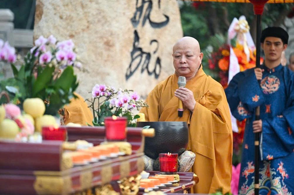 Buổi lễ được cử hành theo nghi thức tâm linh truyền thống của Phật giáo, dưới sự chủ trì của Đức Pháp chủ. Các nghi lễ niêm hương bạch Phật, sái tịnh đàn tràng, tuyên đọc pháp ngữ thỉnh an vị Xá lợi Bồ tát, cùng thời khóa tụng kinh cầu nguyện, đã diễn ra trong bầu không khí trang nghiêm, thấm đẫm đạo vị.