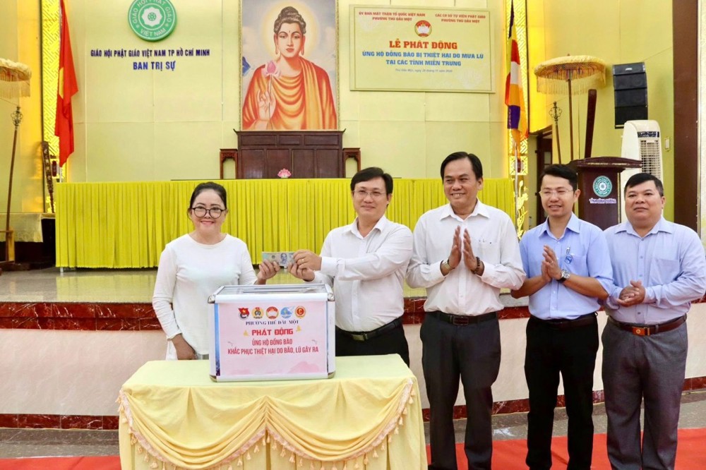 Ngay sau lễ phát động, lãnh đạo địa phương, chư Tôn đức Tăng Ni và Phật tử đã trực tiếp tham gia quyên góp được gần 100 triệu đồng và 1.000 vỉ thuốc, thể hiện tinh thần hưởng ứng mạnh mẽ đối với hoạt động đầy ý nghĩa này. Toàn bộ nguồn lực quyên góp sẽ được Ủy ban MTTQ phường Thủ Dầu Một tổng hợp và chuyển đến tận tay người dân vùng bị ảnh hưởng trong thời gian sớm nhất.
