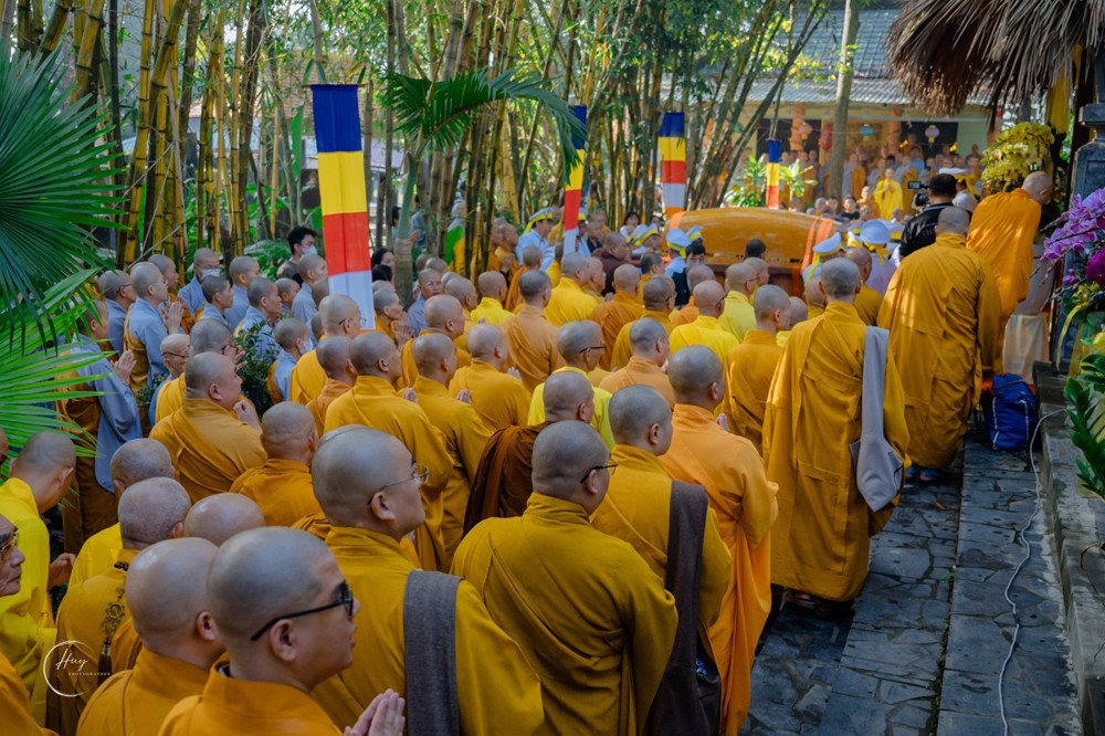 Sau lễ truy niệm, kim quan Trưởng lão Hòa thượng được cung thỉnh phụng tống đến chùa Thanh Sơn, phường Long Bình, TP.HCM để cử hành lễ Trà tỳ và nhập Bảo tháp. Trong tiếng niệm Phật trang nghiêm, thanh tịnh, hàng ngàn Tăng Ni và Phật tử đồng tâm tiễn biệt bậc cao Tăng thạc đức — người đã để lại cho Giáo hội và hàng hậu học một tấm gương sáng ngời về đạo hạnh, trí tuệ và tâm nguyện hoằng pháp vô úy.