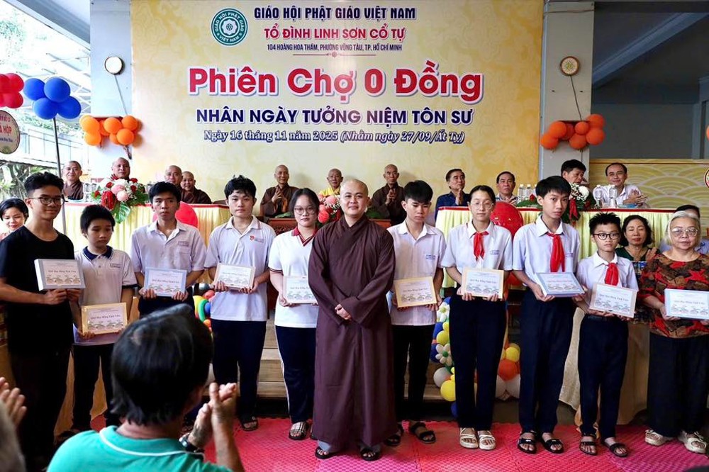 Trước đó, ngày 16-11, Đại đức Thích Huệ Thảo – trụ trì chùa Linh Sơn Cổ Tự, đã tổ chức “Phiên chợ 0 đồng” trao 350 suất quà cho các hộ gia đình khó khăn trên địa bàn, 20 phần học bổng cho các em hiếu học và ủng hộ 30 triệu đồng đến Ủy ban Mặt trận Tổ quốc Việt Nam phường Vũng Tàu.