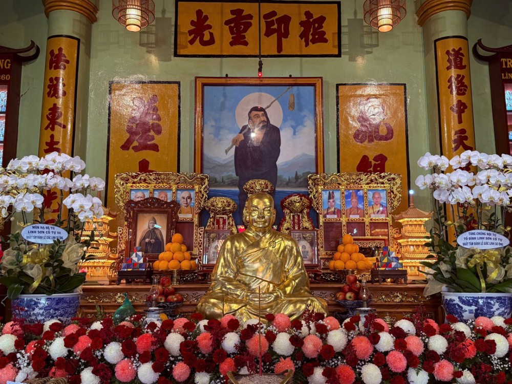 Trước Tổ đường, Đại đức Thích Huệ Thảo – trụ trì chùa Linh Sơn Cổ Tự, đã cung thỉnh chư Tôn đức Tăng Ni dâng nén tâm hương tưởng niệm, tri ân cuộc đời và hành trạng của cố Trưởng lão Hòa thượng Thích Tịnh Viên.