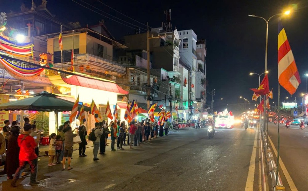 PSO - Tối ngày 12/5/2025 (nhằm ngày Rằm tháng Tư năm Ất Tỵ), trong không khí hân hoan của Đại lễ Phật đản Vesak Liên Hiệp Quốc 2025, Phật lịch 2569, Ban Trị sự GHPGVN quận 8 đã phối hợp cùng Ban Đại diện Phật giáo người Hoa TP.HCM và Ban Trị sự GHPGVN quận 5 tổ chức diễu hành xe hoa qua các tuyến đường trên địa bàn quận 8, TP.HCM.