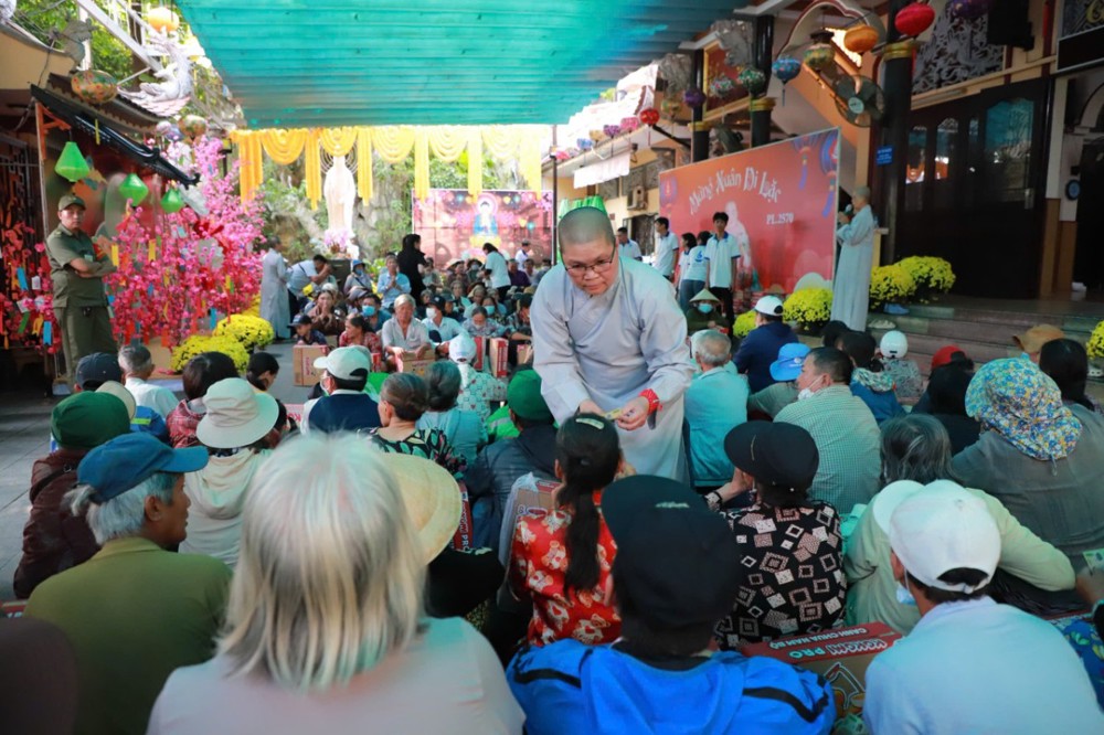 Tại buổi trao quà, Ni sư Thích Nữ Huệ Đức – Trụ trì Quan Âm Tu viện cho biết, theo thông lệ hằng năm, tự viện duy trì các hoạt động từ thiện nhằm chăm lo đời sống cho người dân địa phương, đặc biệt là Phật tử đạo tràng, bệnh nhân đang điều trị tại Tuệ Tĩnh Đường Quan Âm Tu viện, người bán vé số, người vô gia cư, người khuyết tật và các hoàn cảnh khó khăn trong xã hội.