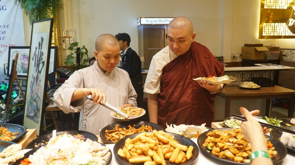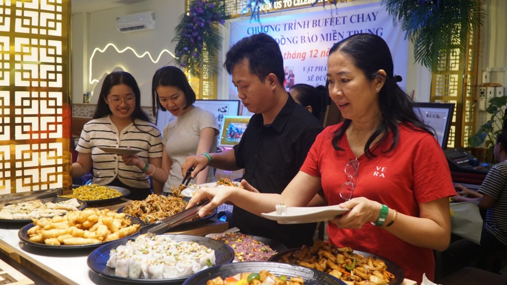 Buổi buffet được phục vụ trong hai khung giờ 11g00 – 14g00 và 17g00 – 21g00, thu hút sự tham dự của chư Tôn đức Tăng Ni, Phật tử và nhiều mạnh thường quân. Những món chay được chuẩn bị từ nguồn thực phẩm sạch, thuần chay và bảo đảm dinh dưỡng, thể hiện tinh thần “ăn chay gieo lành”, đồng thời gửi gắm tấm lòng sẻ chia đến bà con vùng bị thiên tai.