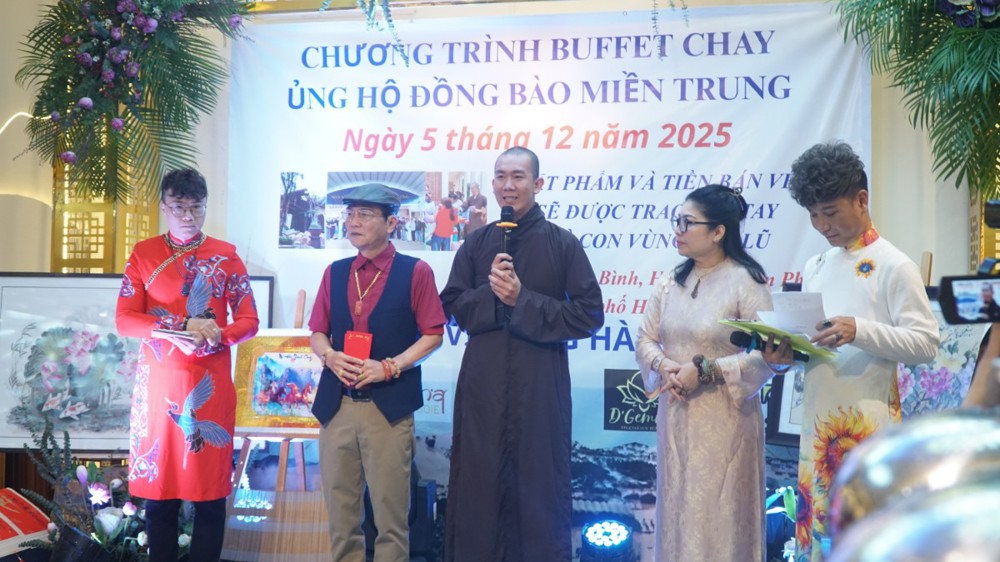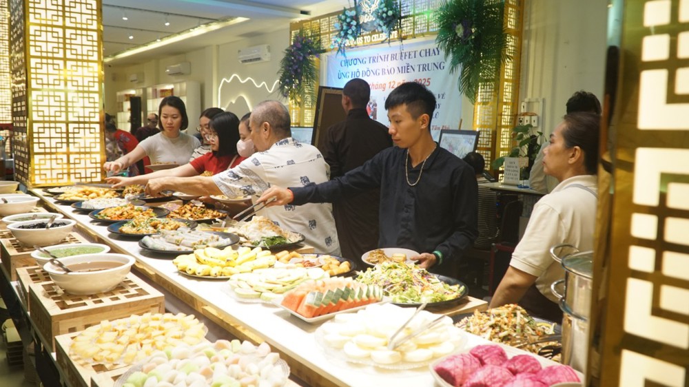 PSO - Tối ngày 5/12/2025, tại Nhà hàng chay D’Gamme (phường Phú Thạnh, TP.HCM), chương trình buffet chay gây quỹ ủng hộ đồng bào miền Trung đã diễn ra trong không khí trang nghiêm và ấm tình đạo vị.