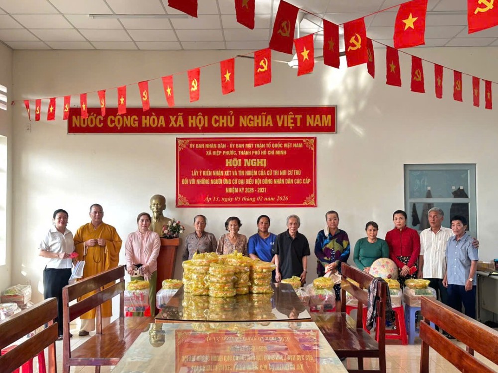 PSO - Nhân dịp Xuân Bính Ngọ 2026, Tịnh thất An Lạc (xã Hiệp Phước, TP.HCM) đã tổ chức chuỗi hoạt động thiện nguyện ý nghĩa, đến thăm hỏi, chúc Tết các gia đình chính sách, hộ nghèo, hộ có hoàn cảnh khó khăn và các gia đình có con em chuẩn bị nhập ngũ.