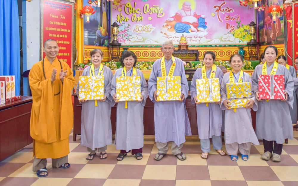 Sau thời khóa thọ trai, đạo tràng Bát Quan Trai đã tổ chức buổi họp mặt tất niên, tổng kết các hoạt động tu học trong năm và trao quà tất niên đến các hành giả, khép lại một năm tu tập trong niềm hoan hỷ và tinh tấn.