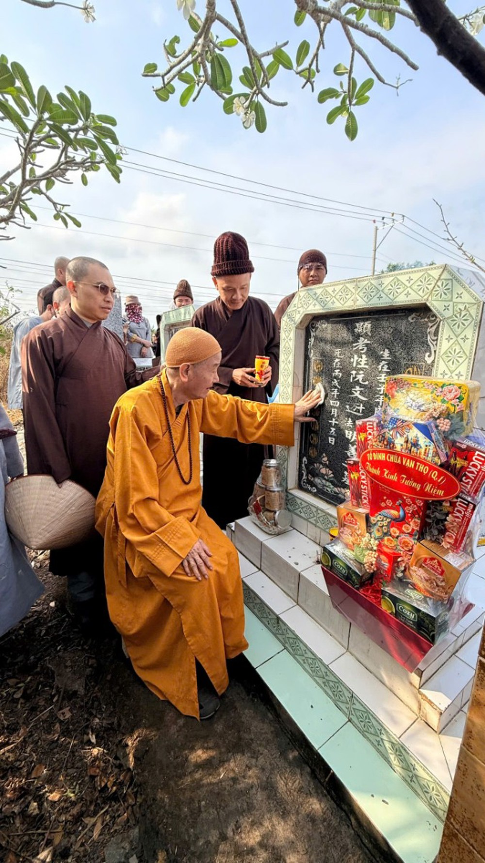 Theo chương trình, đoàn đã trở về quê hương Hòa thượng Tôn sư, thăm viếng mộ bà mẫu, bày tỏ lòng hiếu kính và tưởng niệm thâm ân sinh thành. Tại đây, Ban Tổ chức trao tặng 120 phần quà từ thiện đến bà con có hoàn cảnh khó khăn tại xã Đồng Sơn, góp phần sẻ chia khó khăn và mang hơi ấm ngày Xuân đến với người dân địa phương.