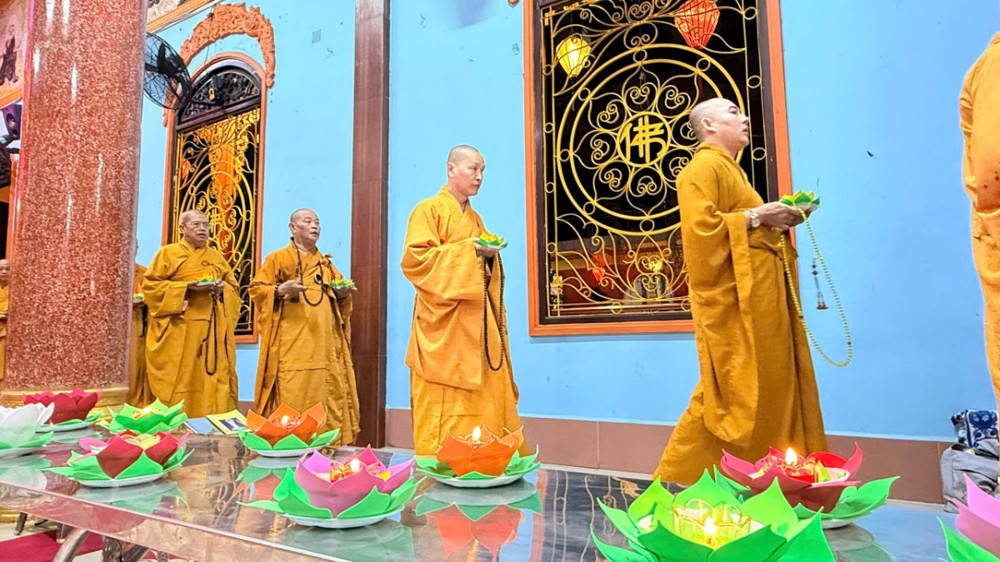 PSO - Tối ngày 5/1/2026 (nhằm ngày 17/11 Âm lịch), nhân ngày vía Đức Phật A Di Đà, Tổ đình chùa Vạn Thọ (TP.HCM) đã trang nghiêm tổ chức khóa lễ tụng kinh, kinh hành và thắp hoa đăng trong không khí thanh tịnh, thấm đượm đạo vị.