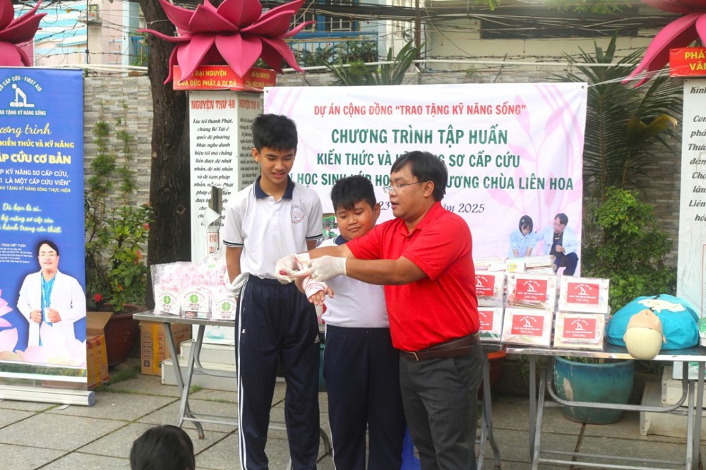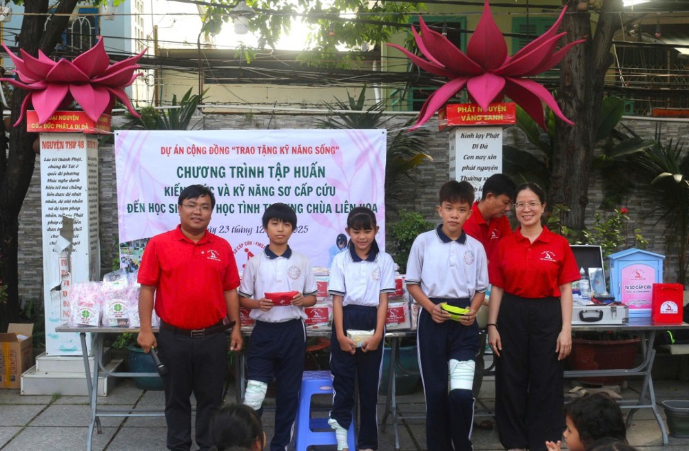 PSO - Ngày 23/12/2025, được sự chấp thuận của Thượng tọa Thích Thiện Quý – Phó Ban Trị sự GHPGVN TP.HCM, Trụ trì chùa Liên Hoa (phường Bình Đông, TP.HCM), Công ty TNHH Đào tạo – Tư vấn An toàn và Sơ cấp cứu FAST với dự án “Trao tặng kỹ năng sống”, cùng sự đồng hành của Công ty Cổ phần Sản xuất Thương mại Dịch vụ Lá Cỏ (Laco Foods), đã phối hợp với quý Thầy, quý Cô tại các lớp học tình thương chùa Liên Hoa tổ chức chương trình trao quà, tư vấn và trang bị kiến thức y tế, kỹ năng sơ cấp cứu cho các em học sinh.