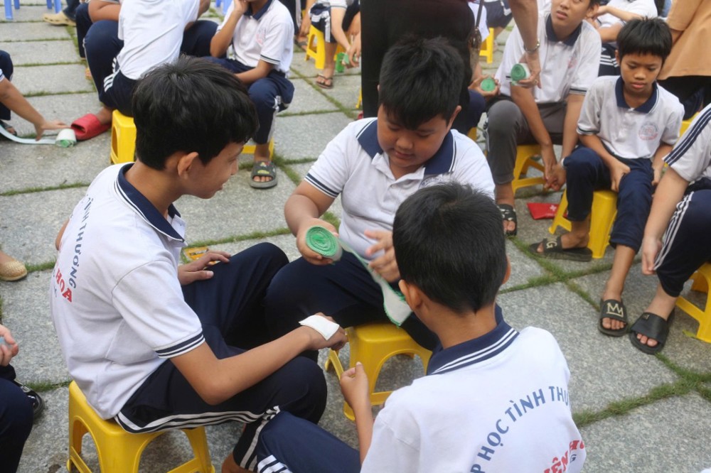 Chương trình được sự hướng dẫn chuyên môn và tài trợ của ThS. Trần Viết Tuấn – đồng sáng lập dự án, cùng các nhà tài trợ bà Trần Thị Mỹ Thanh và ông Đặng Quang Huy, đồng sáng lập Nhóm “Trao tặng kỹ năng sống”. Tại buổi sinh hoạt, các em học sinh được trang bị nhiều nội dung thiết thực như: nguyên tắc an toàn khi tiếp cận nạn nhân; di chuyển nạn nhân trong trường hợp khẩn cấp; sơ cứu người bất tỉnh, ngưng tim – ngưng thở; xử trí hóc dị vật; cầm máu, băng bó vết thương; sơ cứu đột quỵ; sơ cứu bỏng, điện giật, động vật cắn đốt; xử trí các tai nạn thương tích thường gặp… Thông qua hình thức hướng dẫn trực quan, kết hợp thực hành trên mô hình, các em dễ tiếp thu và ghi nhớ kiến thức.