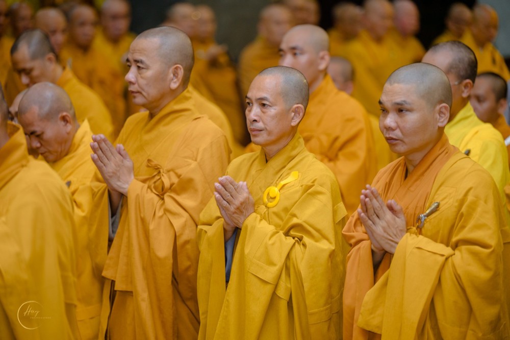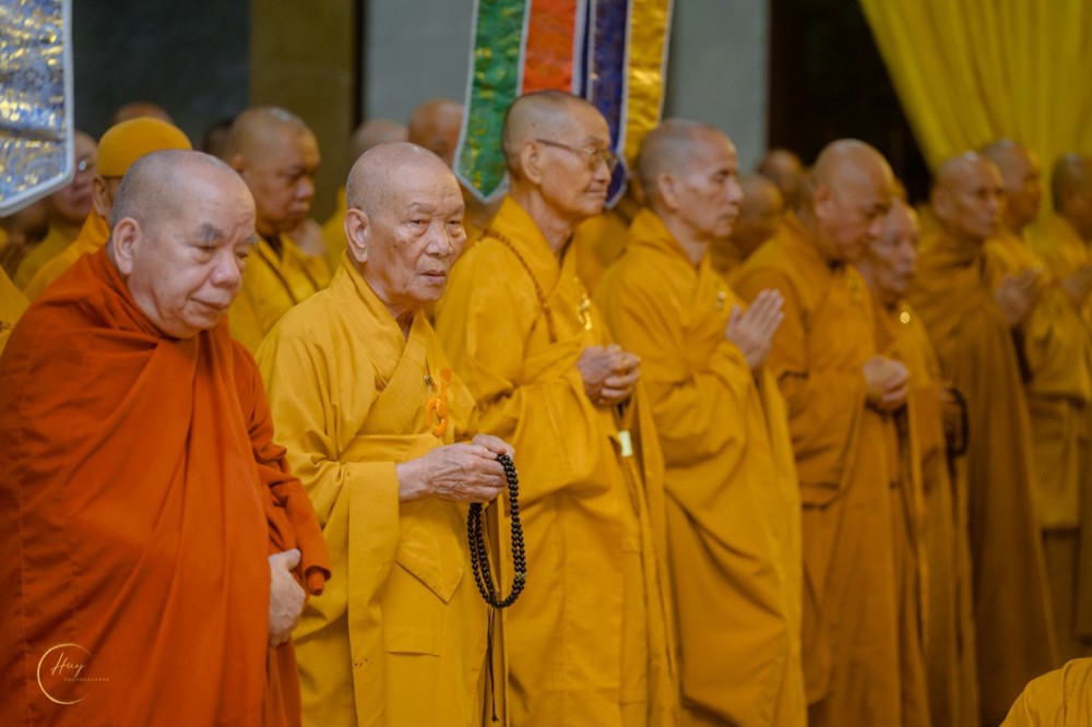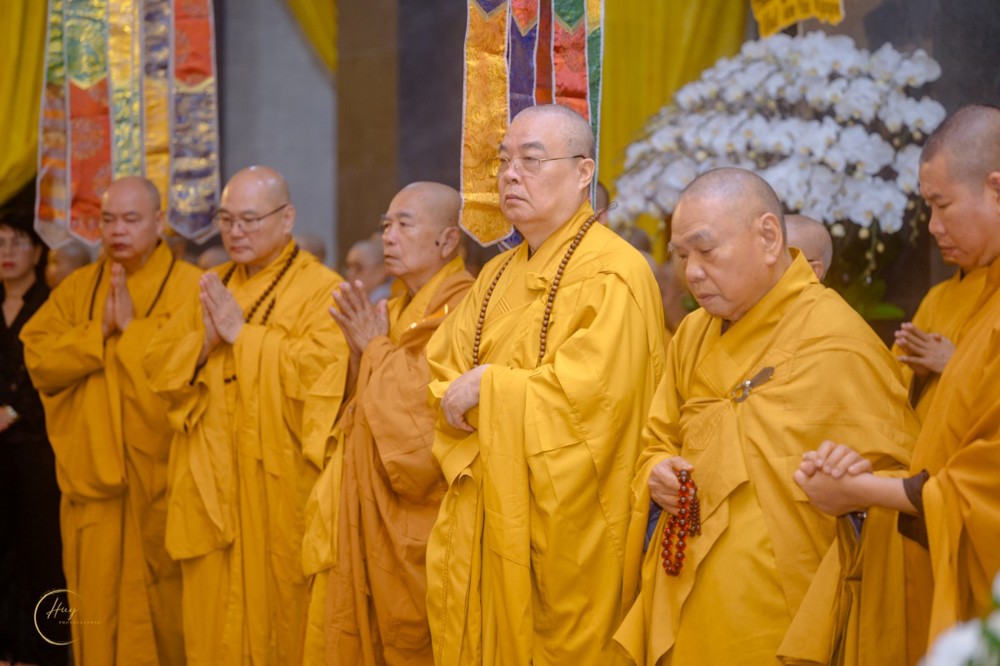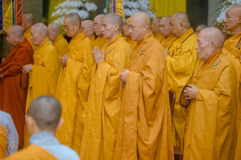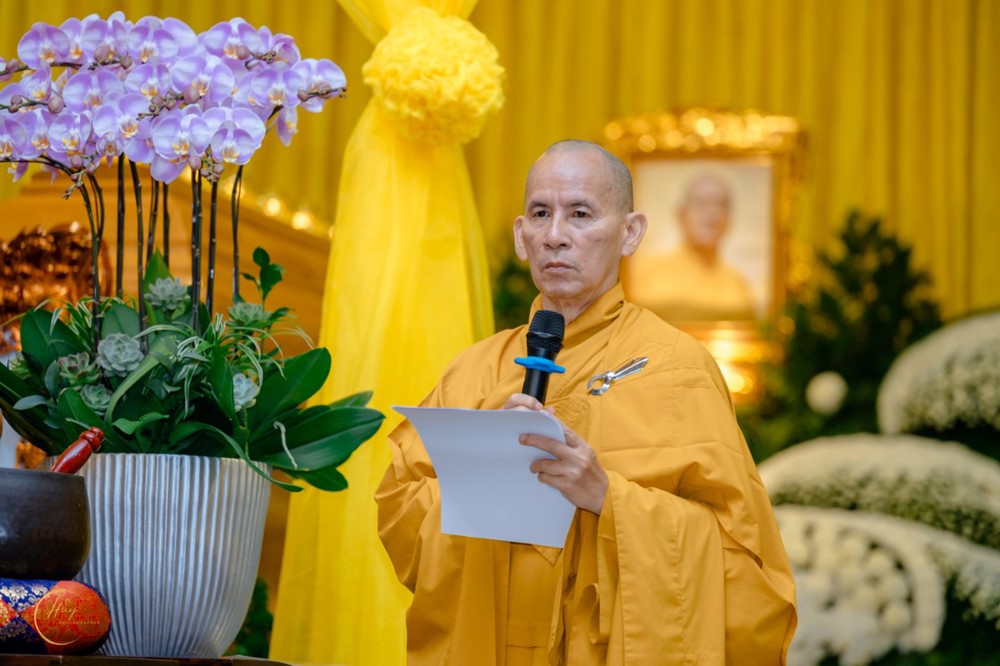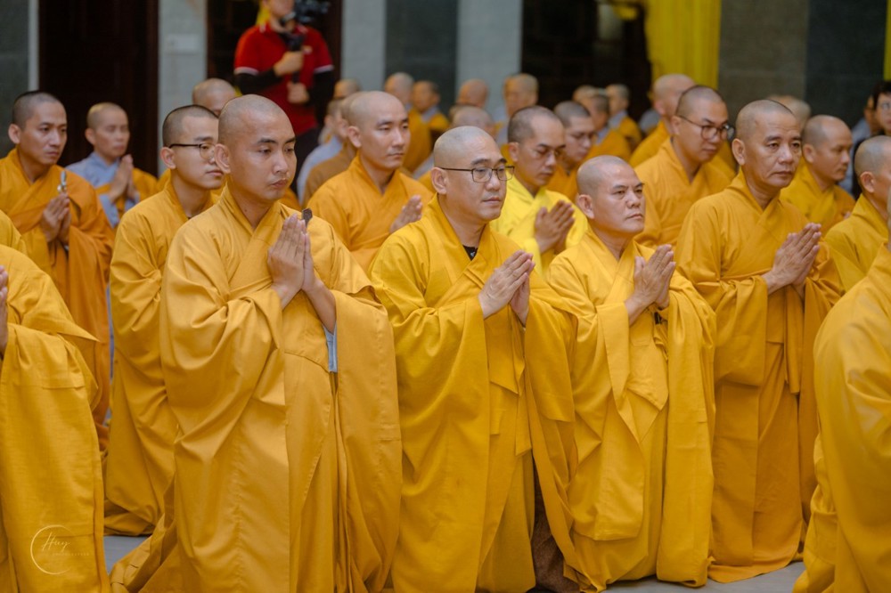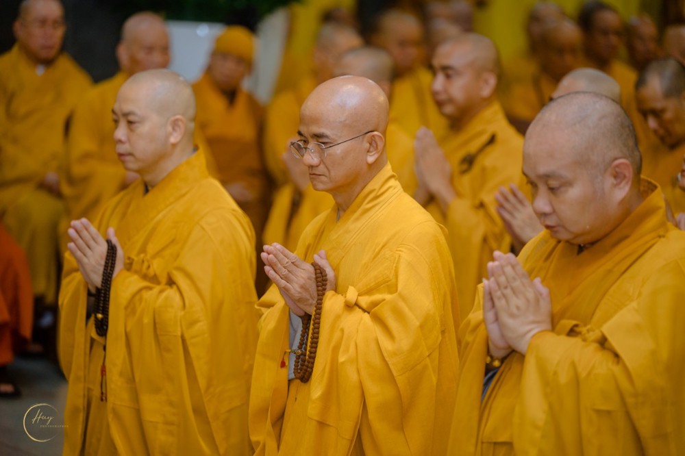 Tiếp nối chương trình, Hòa thượng Thích Lệ Trang – Phó Chủ tịch HĐTS, Trưởng ban Nghi lễ Trung ương, Trưởng ban Trị sự GHPGVN TP.HCM làm sám chủ, chủ trì nghi lễ tuyên pháp ngữ, phất trần trong không khí thanh tịnh, cùng tiếng niệm Phật liên hồi vang vọng của Tăng Ni và Phật tử.