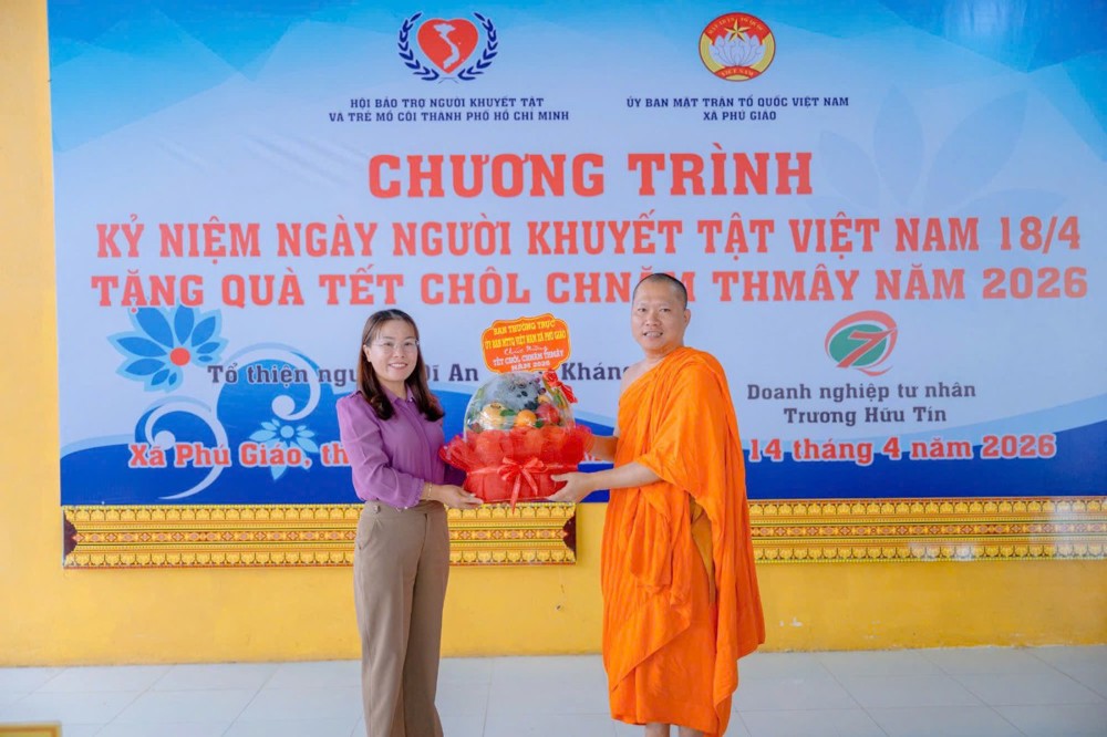 Chương trình do Hội Bảo trợ Người khuyết tật và Trẻ mồ côi TP.HCM phối hợp cùng Ủy ban MTTQ Việt Nam xã Phú Giáo đồng tổ chức, góp phần lan tỏa tinh thần sẻ chia và chăm lo đến đồng bào Khmer cùng các hoàn cảnh khó khăn trên địa bàn.
