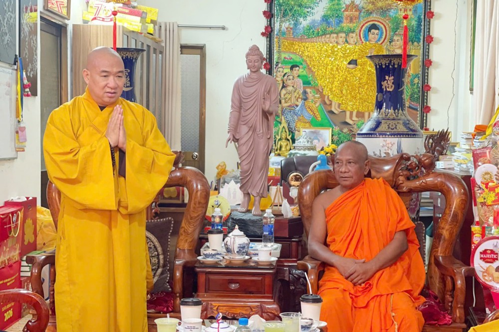Tại buổi gặp, Thượng tọa Thích Phước Nguyên ân cần thăm hỏi sức khỏe Hòa thượng cùng chư Tăng và đồng bào Phật tử Khmer, đồng thời gửi lời chúc năm mới an khang, hạnh phúc, đón Tết cổ truyền trong không khí an vui, đậm đà bản sắc dân tộc.