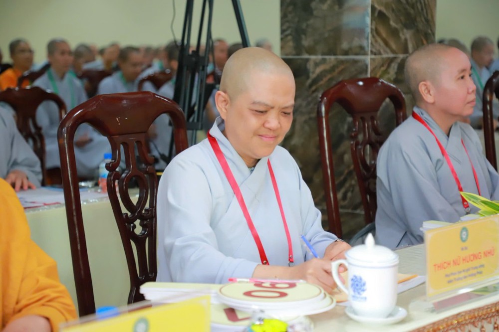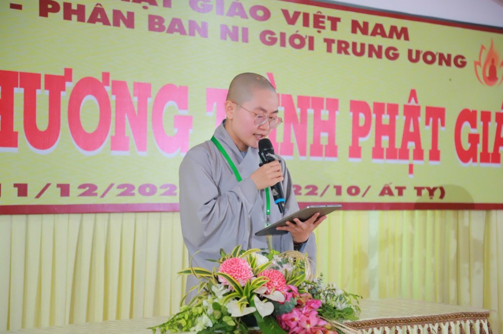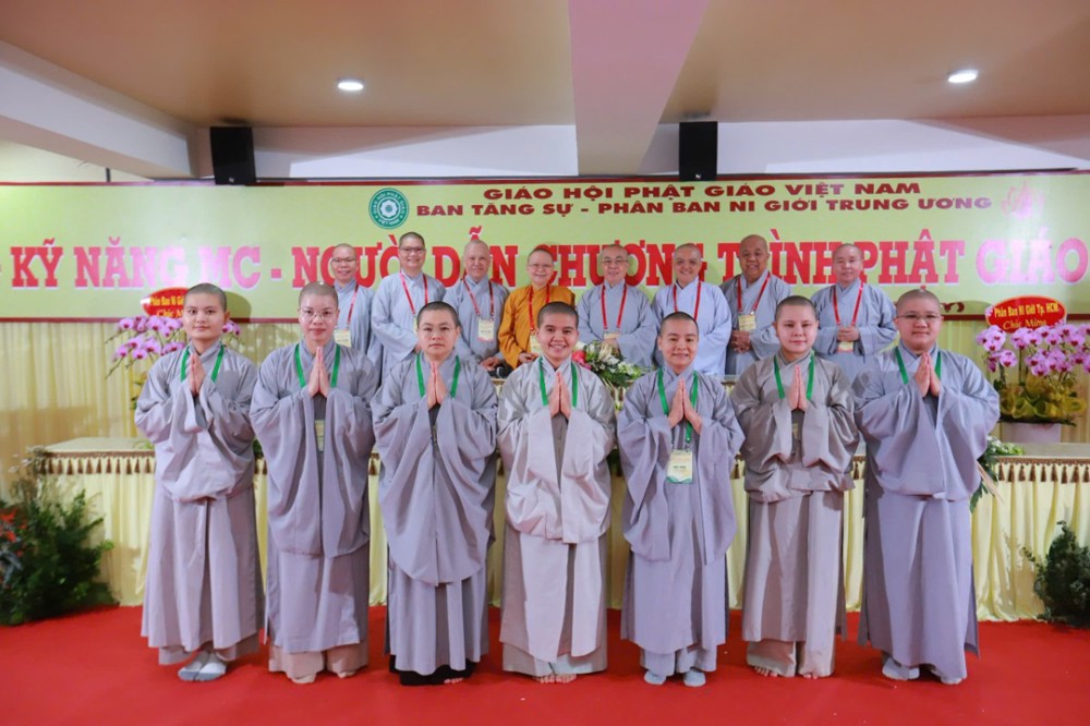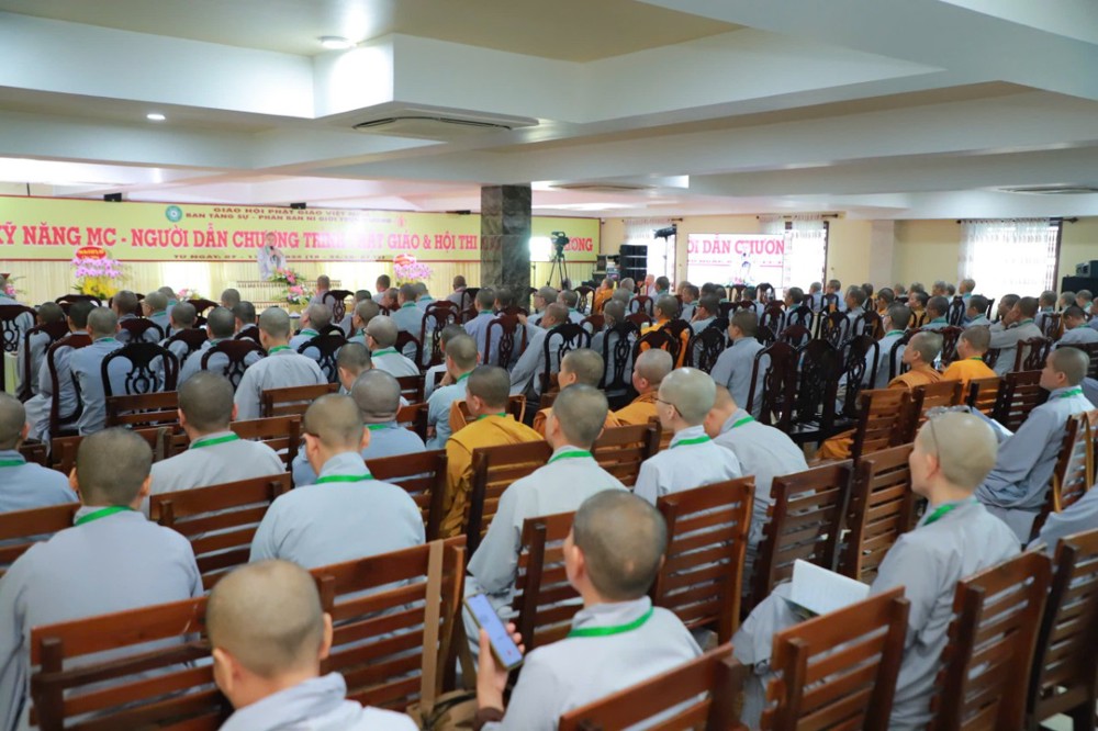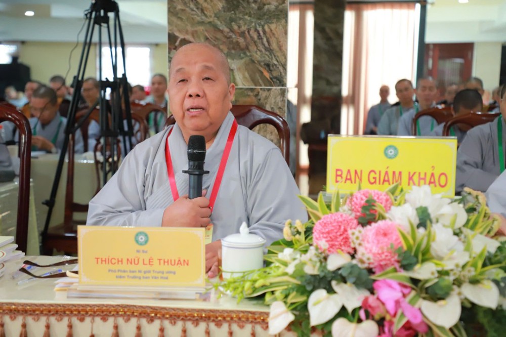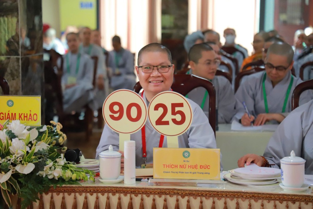 Ban Giám khảo hội thi gồm Ni sư Thích Nữ Hòa Liên – Ủy viên Thường trực HĐTS, Phó Phân ban Ni giới Trung ương đặc trách Ni giới Hệ phái Khất sĩ; Ni sư Thích Nữ Như Nguyệt – Ủy viên HĐTS, Phó Trưởng Phân ban Ni giới Trung ương, Trưởng Tiểu ban Giáo dục; Ni sư Thích Nữ Hương Nhũ – Phó Trưởng Phân ban Ni giới Trung ương, Trưởng Tiểu ban Hoằng pháp; Ni sư Thích Nữ Lệ Thuận – Phó Trưởng Phân ban Ni giới Trung ương, Trưởng Tiểu ban Văn hóa; Ni sư Thích Nữ Huệ Đức – Ủy viên HĐTS, Chánh Thư ký Phân ban Ni giới Trung ương; Sư cô Thích Nữ Như Tâm – Ủy viên Thường trực Phân ban Ni giới Trung ương cùng quý Ni sư, Sư cô Ban Thư ký, Ban Kiểm soát và hơn 250 học viên, thí sinh đồng tham dự.