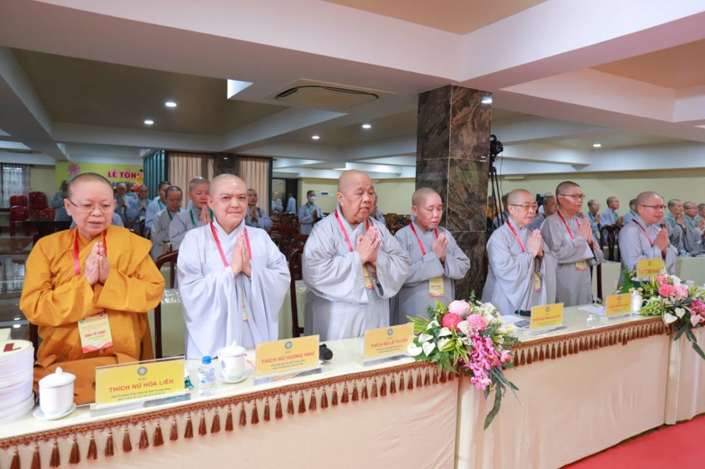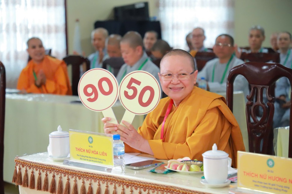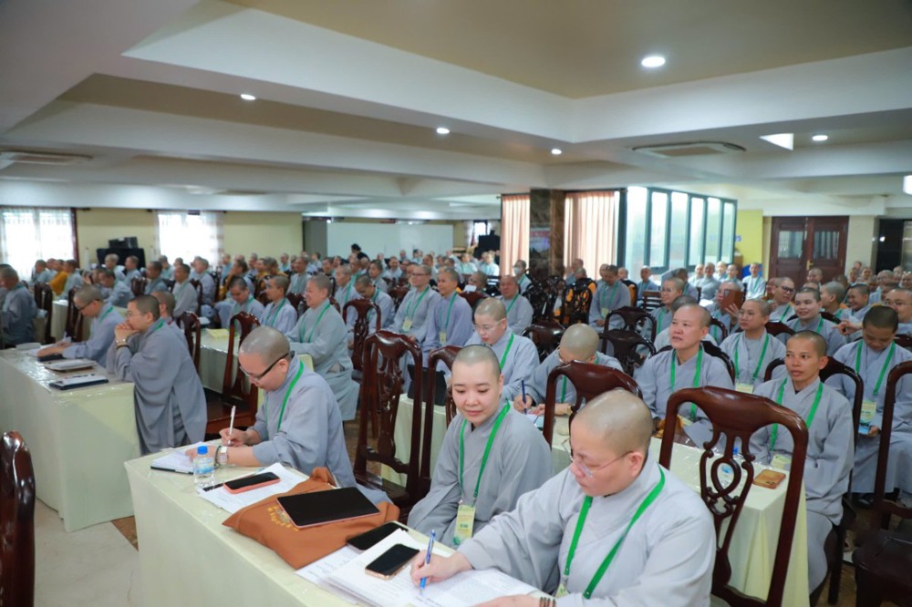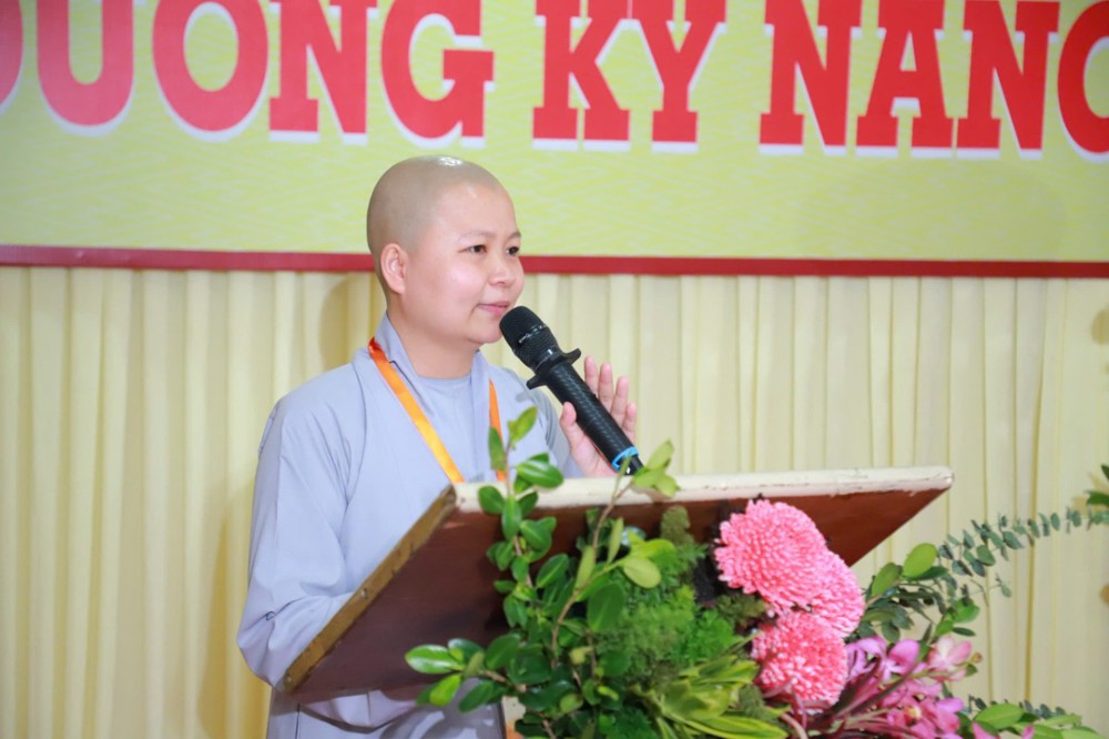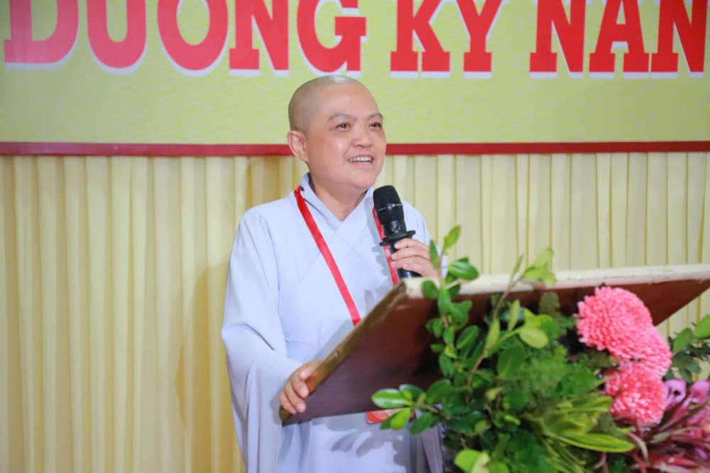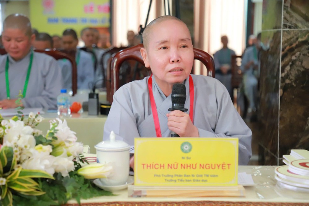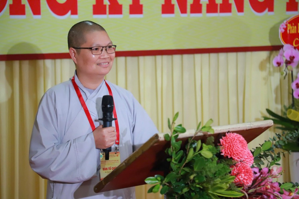 Ban Giám khảo hội thi gồm Ni sư Thích Nữ Hòa Liên – Ủy viên Thường trực HĐTS, Phó Phân ban Ni giới Trung ương đặc trách Ni giới Hệ phái Khất sĩ; Ni sư Thích Nữ Như Nguyệt – Ủy viên HĐTS, Phó Trưởng Phân ban Ni giới Trung ương, Trưởng Tiểu ban Giáo dục; Ni sư Thích Nữ Hương Nhũ – Phó Trưởng Phân ban Ni giới Trung ương, Trưởng Tiểu ban Hoằng pháp; Ni sư Thích Nữ Lệ Thuận – Phó Trưởng Phân ban Ni giới Trung ương, Trưởng Tiểu ban Văn hóa; Ni sư Thích Nữ Huệ Đức – Ủy viên HĐTS, Chánh Thư ký Phân ban Ni giới Trung ương; Sư cô Thích Nữ Như Tâm – Ủy viên Thường trực Phân ban Ni giới Trung ương cùng quý Ni sư, Sư cô Ban Thư ký, Ban Kiểm soát và hơn 250 học viên, thí sinh đồng tham dự.