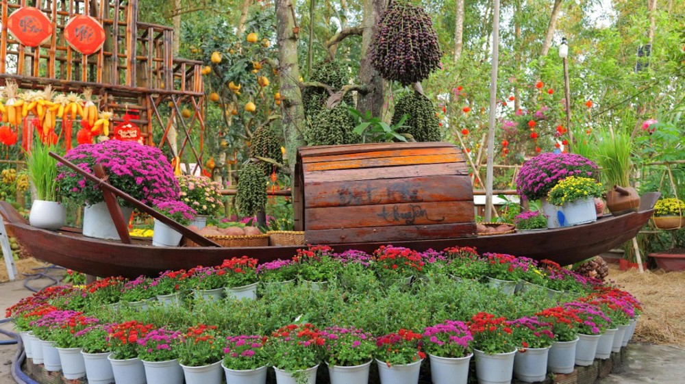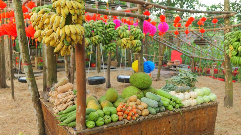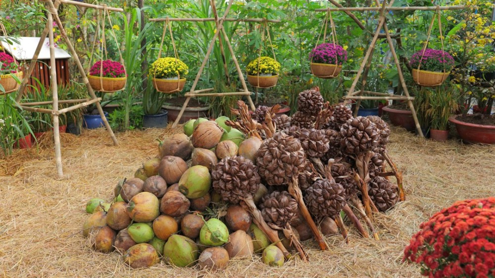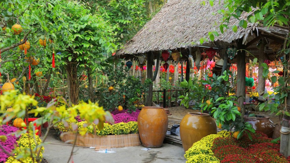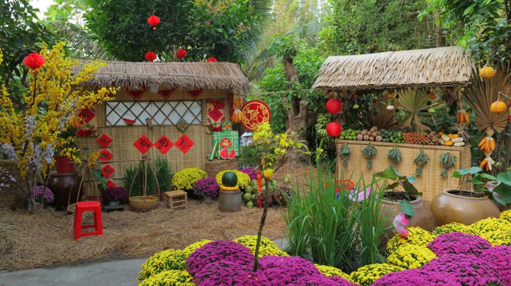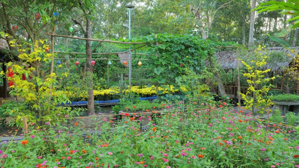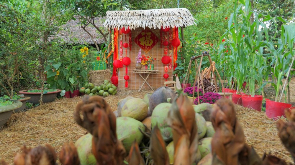 Khu vườn thiền – nơi thường diễn ra các khóa tu thiền Vipassana – cũng được bài trí thành một miền quê sông nước thanh bình. Hình ảnh quang gánh, ghe chở nông sản, sạp chợ quê… gợi lên nét sinh hoạt dung dị của miền Tây Nam Bộ, giúp người trẻ nơi thành thị có cơ hội trải nghiệm hương vị Tết truyền thống, từ đó thêm trân quý văn hóa dân tộc và duy trì phong tục lễ chùa đầu năm.