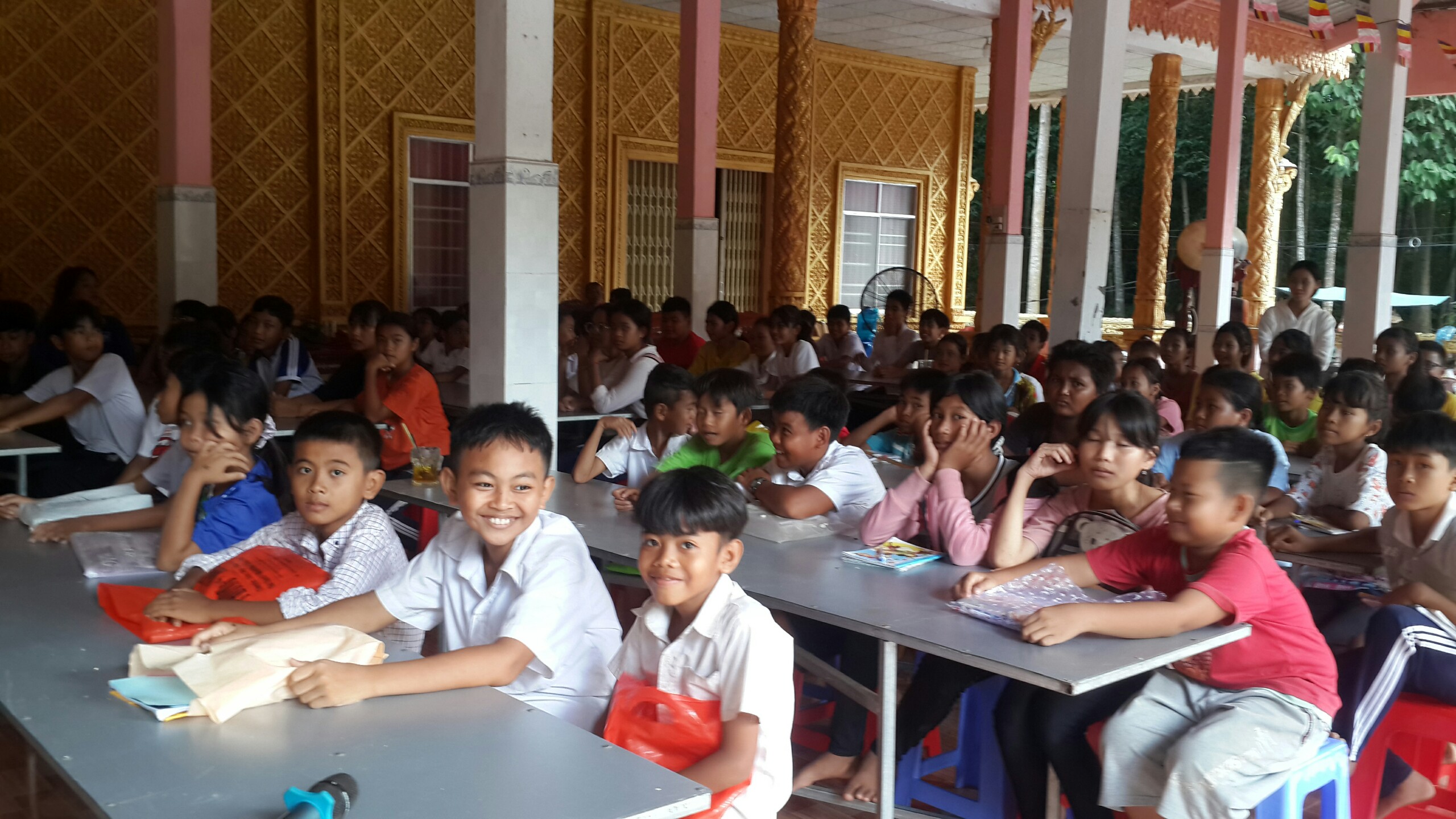 Trà Vinh: Chùa Kompong SaLa trao tặng tập và viết cho học sinh đồng bào dân tộc