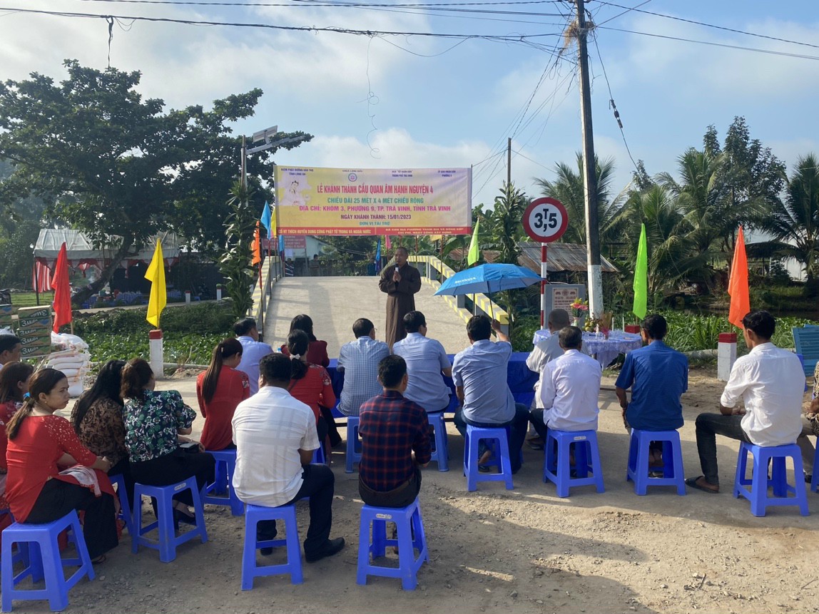 PSO - Sáng ngày 15/1/2023, ĐĐ. Thích Minh Trí - Phó thư ký kiêm Chánh văn phòng BTS, Trưởng Ban thông tin truyền thông Phật giáo tỉnh, trụ trì chùa Long Bửu (xã Nhị Long) đã kết hợp cùng chính quyền địa phương và nhà tài khánh thành 2 cây cầu giao thông nông thôn tại huyện Tập Ngãi và phường 9, thành phố Trà Vinh.