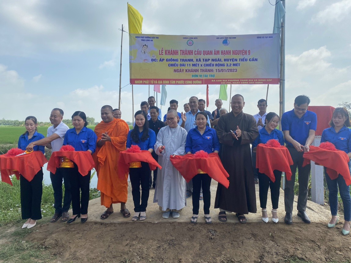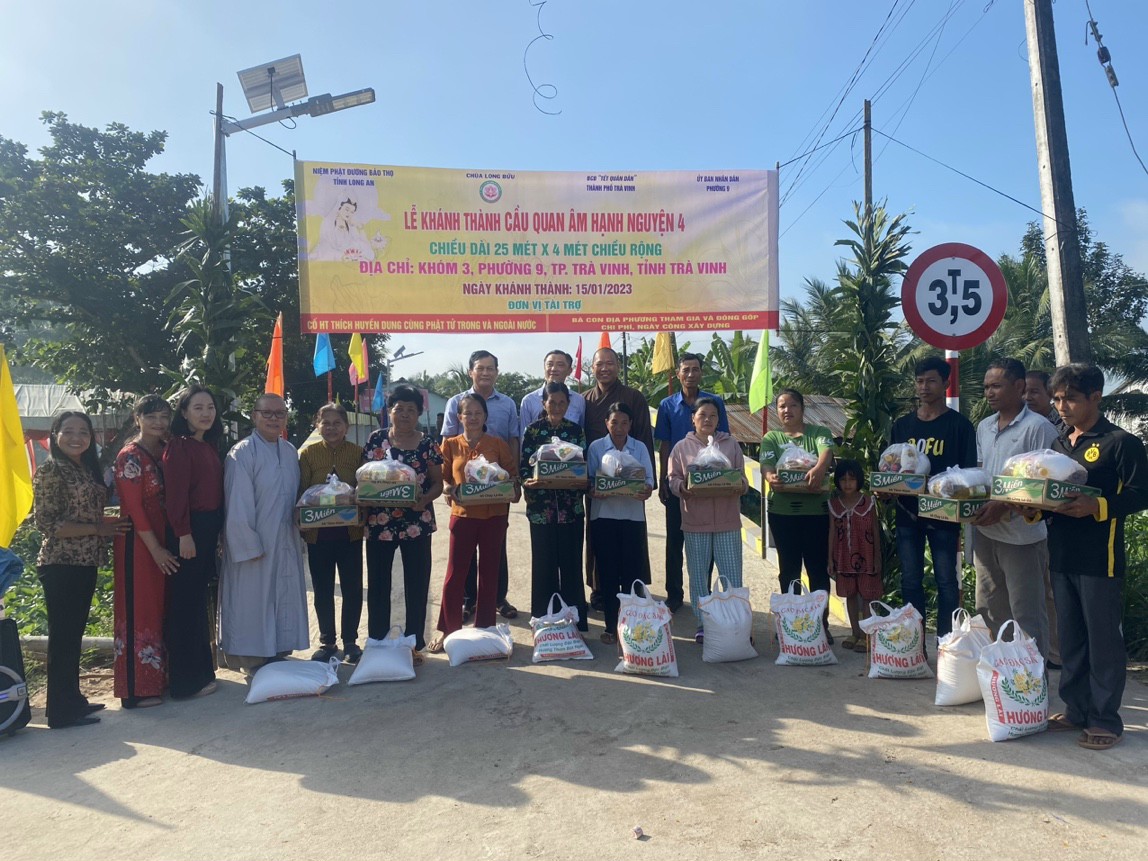 Hai cây cầu giao thông lần này được khánh thành tại huyện Tập Ngãi và phường 9, thành phố Trà Vinh với tên gọi cầu Quan Âm hạnh nguyện 4 và hạnh nguyện 9, với chiều dài 25m ngang 4m và dài 11m ngang 3,2m tổng kinh phí xây dựng là 650 triệu đồng. Do ĐĐ. Thích Minh Trí vận động, NS. Thích Nữ Giác Thành cùng quý mạnh thường quân hỗ trợ kinh phí, bà con địa phương góp ngày công xây dựng.