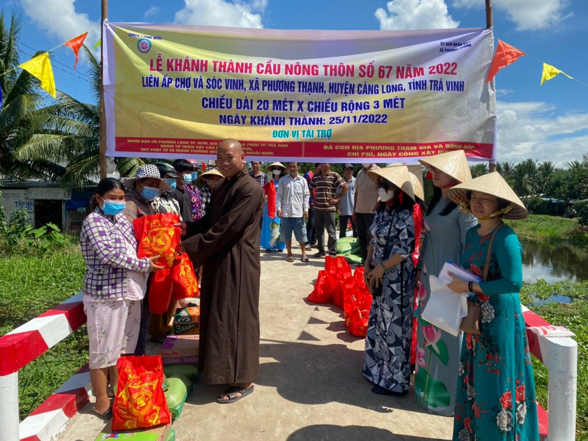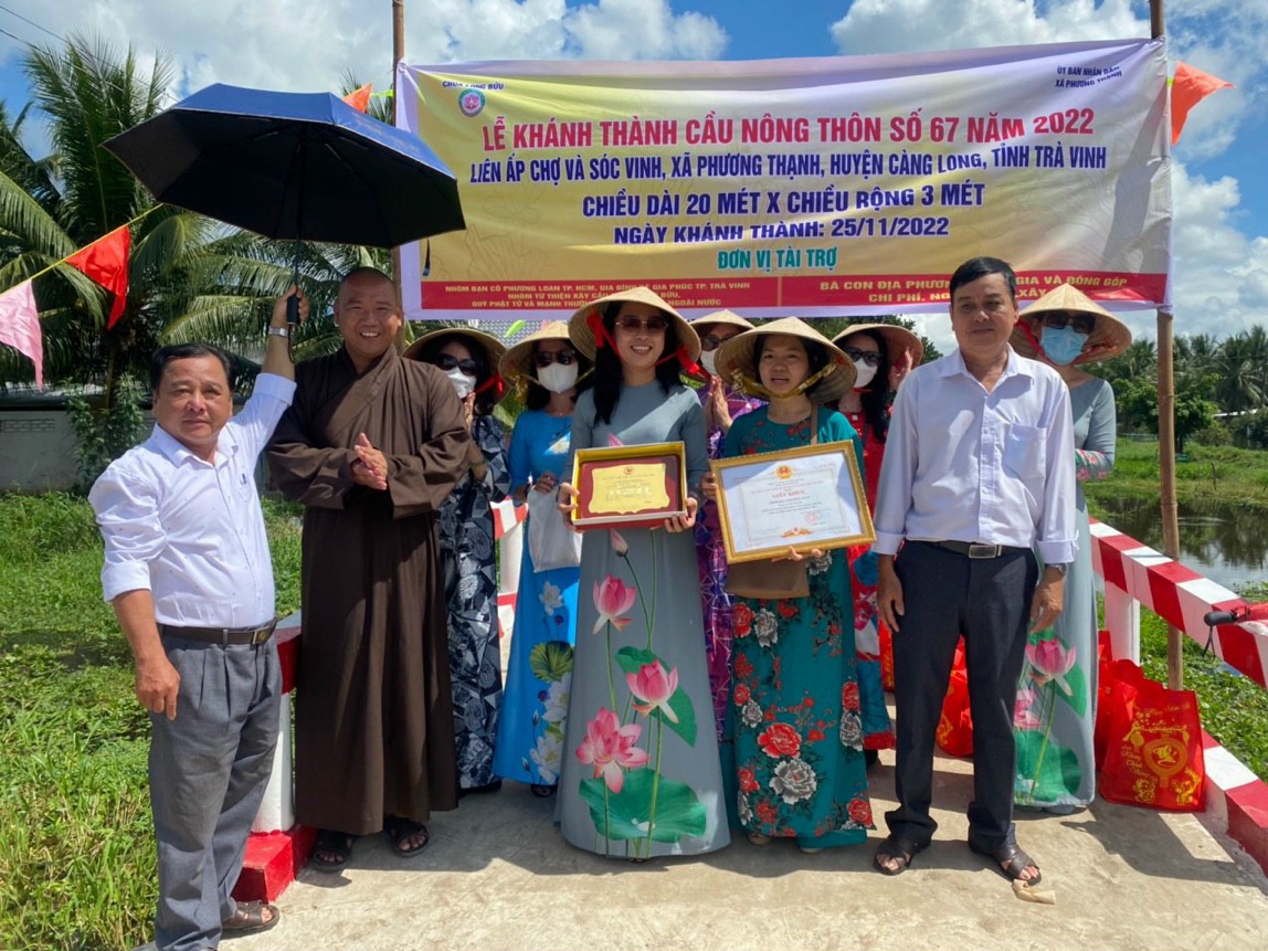 Cầu giao thông nông thôn số 67 do ĐĐ. Thích Minh Trí vận động được sự trợ duyên của nhóm Phật tử Phương Loan (TP. HCM) cùng quý mạnh thường quân gần xa đóng góp bà con địa phương góp ngày công xây dựng. Sau thời gian 6 tháng thi công đã hoàn thiện với chật liệu bê tông cốt thép dài 20m, rộng 3m với tổng kinh phí xây dựng gần 200 triệu.