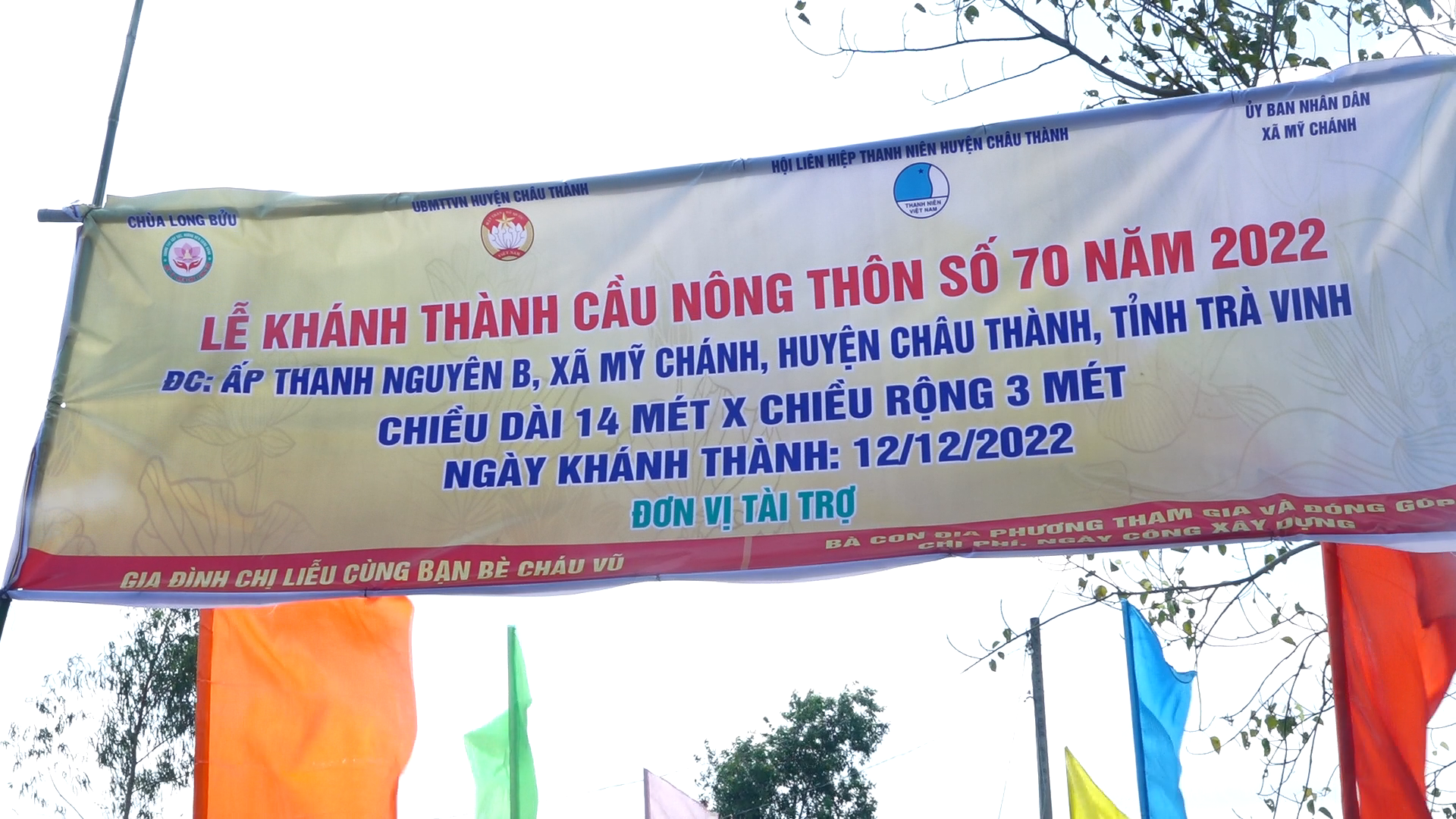 PSO – Sáng ngày 12/12/2022, ĐĐ. Thích Minh Trí – Phó thư ký kiêm Chánh văn phòng BTS, Trưởng Ban thông tin truyền thông GHPGVN tỉnh, trụ trì chùa Long Bửu đã kết hợp cùng chính quyền địa phương và nhà tài trợ khánh thành cầu giao thông nông thôn số 70 trên địa bàn xã Mỹ Chánh, huyện Châu Thành, tỉnh Trà Vinh.