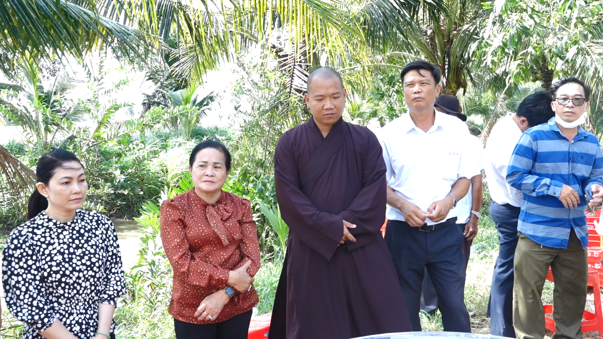 Đại diện chính quyền có ông Trần Văn Trung – Đại diện Ban Tôn giáo tỉnh; ông Dương Huy Bảo – Chủ tịch UBND xã cùng các cấp chính quyền địa phương sở tại và đại diện nhà tài trợ gia đình Phật tử Nguyễn Thị Bích Liễu.