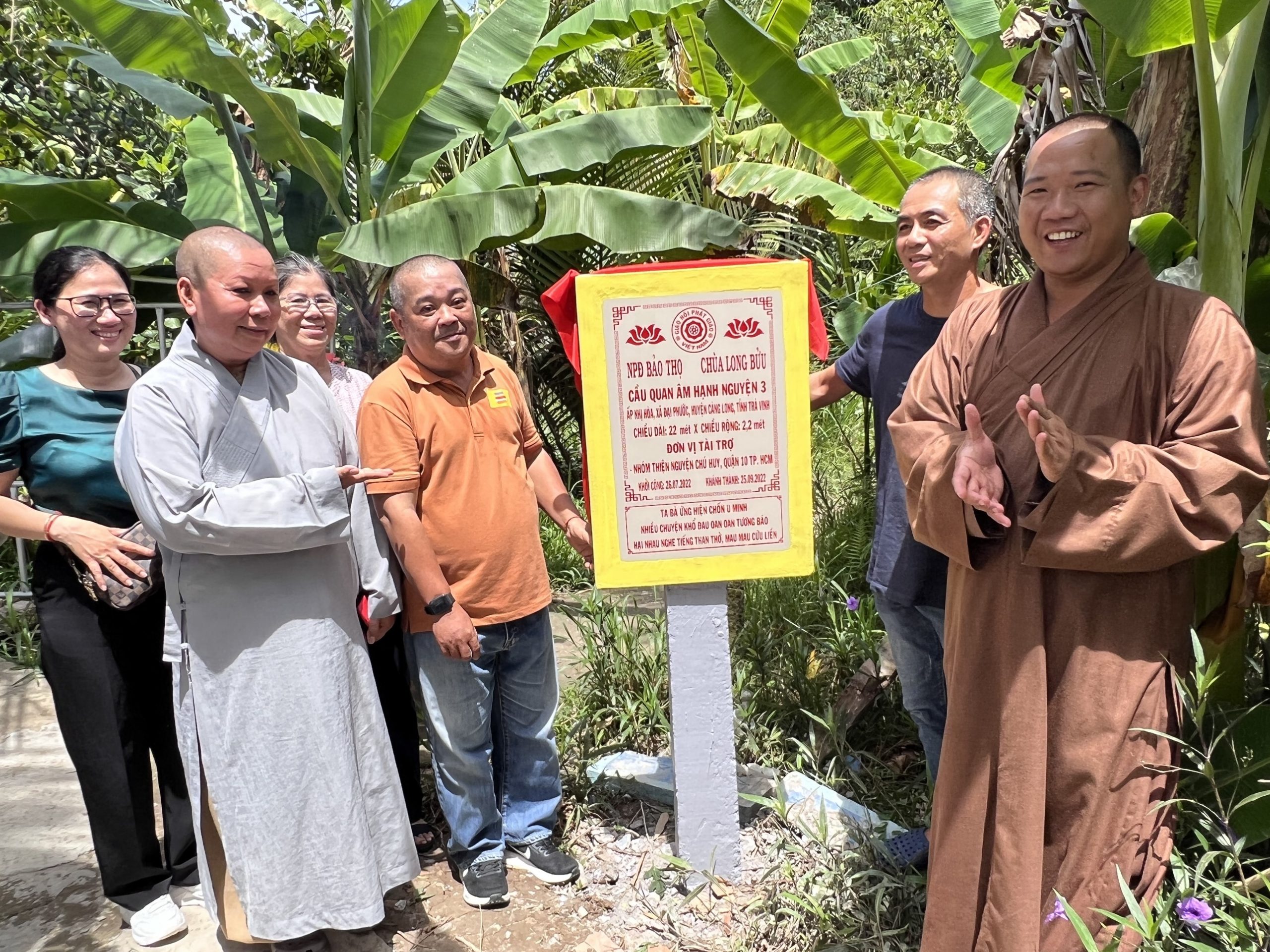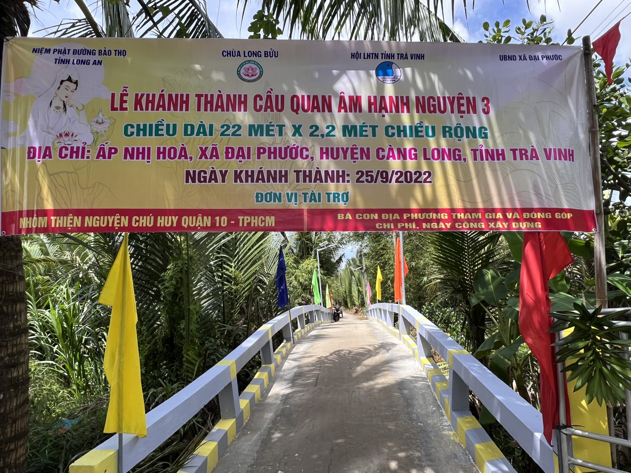 PSO – Chiều ngày 25/9/2022, ĐĐ. Thích Minh Trí – Phó thư ký Chánh Văn phòng BTS, Trưởng Ban Thông tin truyền thông GHPGVN tỉnh, Trụ trì chùa Long Bửu đã kết hợp cùng chính quyền địa phương và nhà tài trợ khánh thành và bàn giao cầu Quan Âm Hạnh Nguyện 3, ấp Nhị Hòa, xã Đại Phước, huyện Càng Long, tỉnh Trà Vinh.