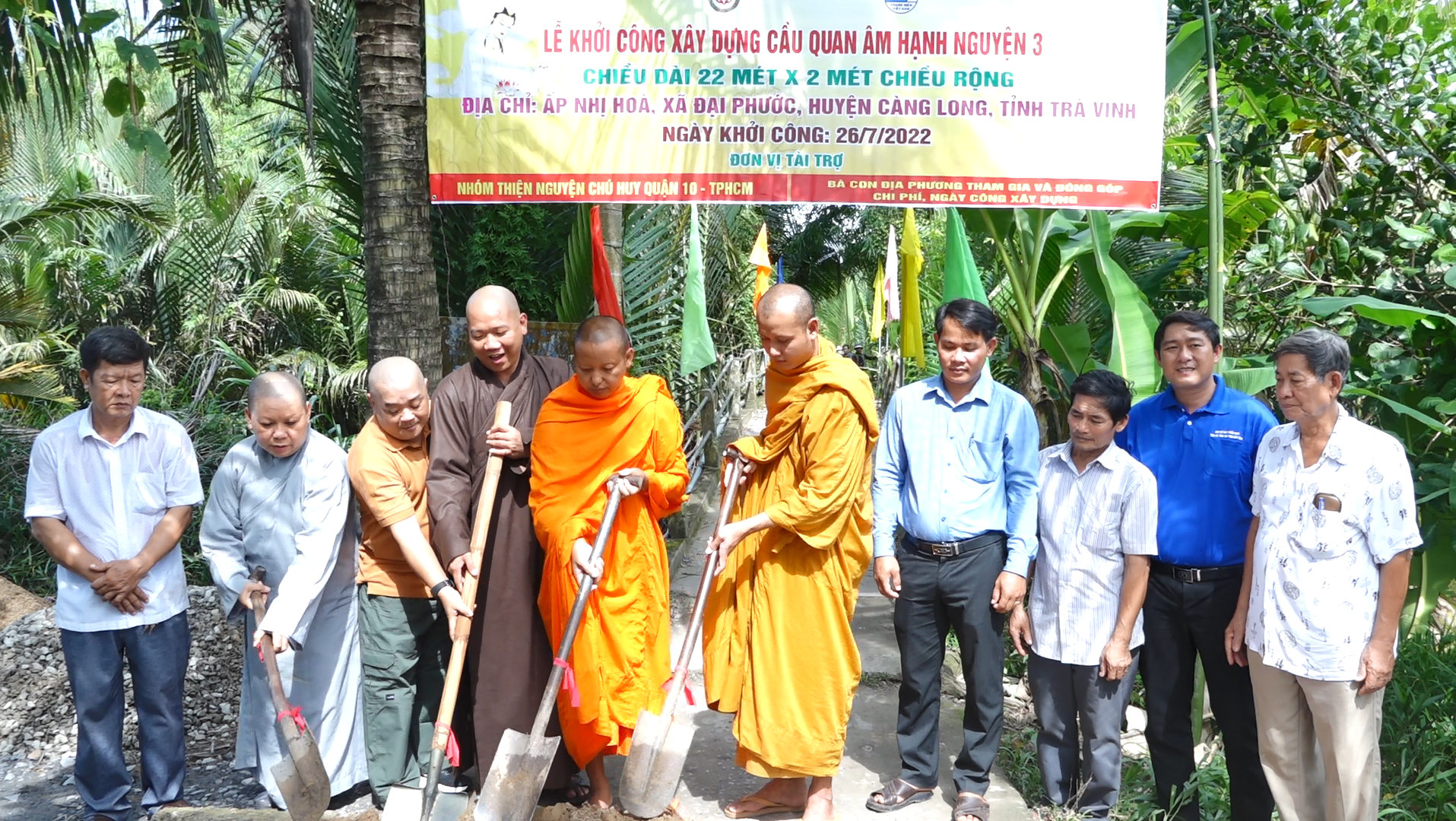 Buổi lễ khởi công xây dựng cầu giao thông nông thôn Quan Âm Hạnh Nguyện 3 và Cầu Quan Âm Hạnh Nguyện 6 kết thúc bằng nghi thức tụng Kinh chúc phúc và động thổ trong niềm hân hoan của tất cả mọi người.