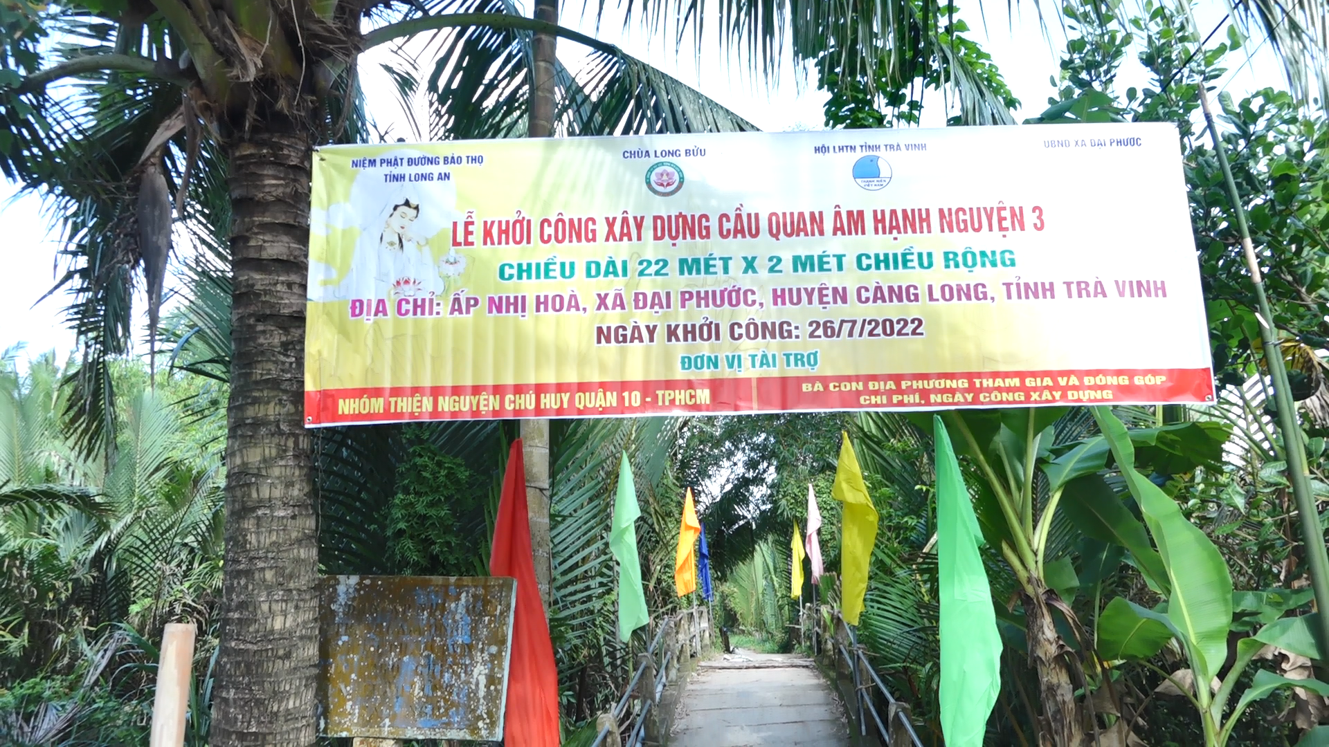 Hai cây cầu giao thông nông thôn lần này cầu Quan Âm Hạnh Nguyện 3 và Cầu Quan Âm Hạnh Nguyện 6 sẽ có chiều dài 22m, ngang 2,5m với tổng kinh phí xây dựng là 250 triệu đồng. Do Quý mạnh thường quân gần xa tài trợ kinh phí, bà con địa phương góp ngày công xây dựng.